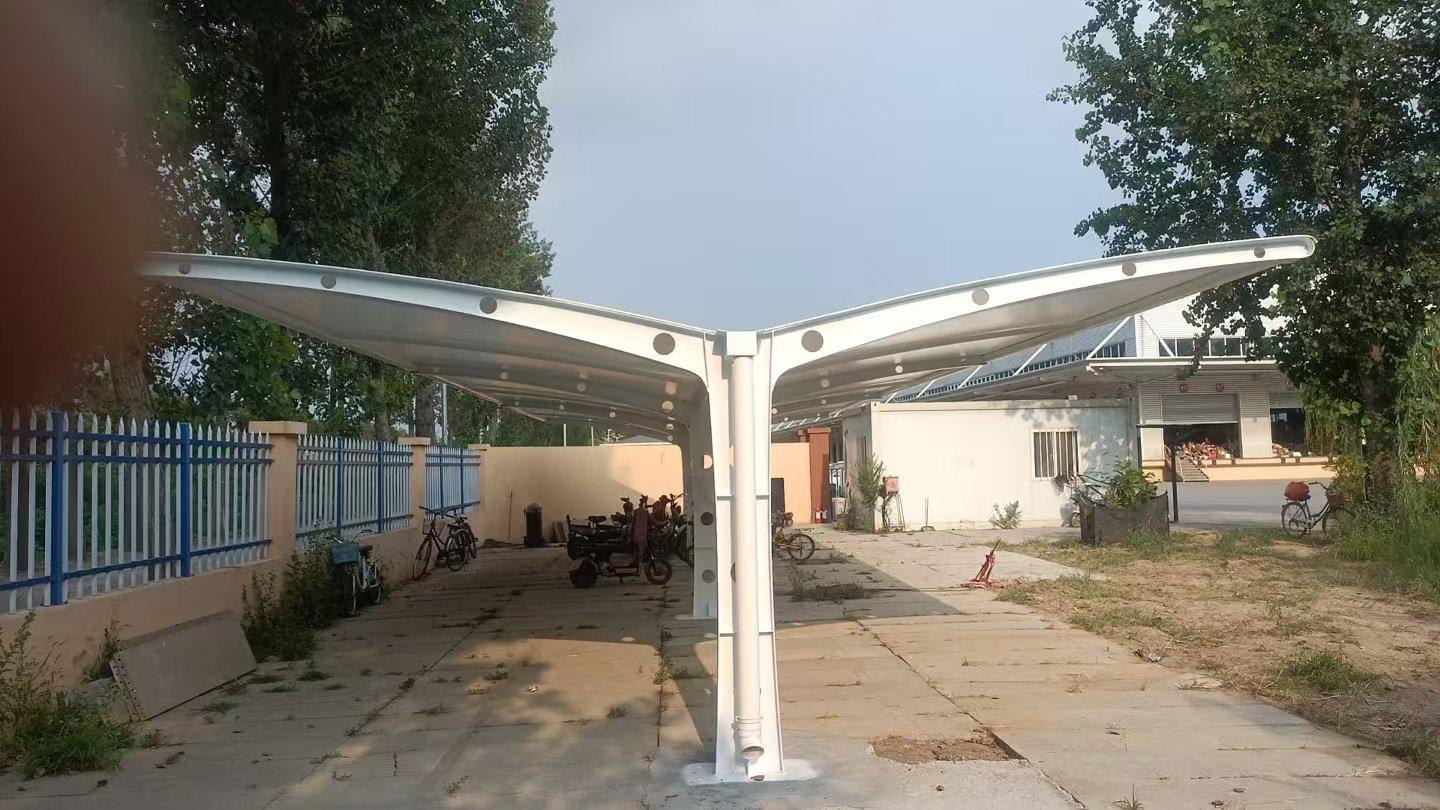 从产品质量和性能来看,其膜结构车棚有不少优势。耐用性方面,由于耐久性好的膜材出现,再加上张拉技术的应用,膜结构车棚一般可使用20 - 30年;艺术性上,它不仅实用,更是一件艺术品,能给人美的视觉享受;透光性佳,透光率达20%,在阳光下暴晒不会产生黄变、雾化、透光不佳的情况;耐候性强,表面有共挤层,适合保护各类车、贵重物品等,使其不受紫外线破坏;抗冲击性强,冲击强度是普通玻璃的250 - 300倍,是亚克力板材的20 - 30倍,是钢化玻璃的2倍,有“不破玻璃”和“响钢”之美称;经济性好,能遮风挡雨减缓爱车的老化速度,投入不多却可大大延长车辆的寿命;阻燃性方面,据测试属阻燃B1级,无火滴无毒气;耐温性方面,在摄氏 - 40到 + 100温度范围内不会引起变形等品质劣化;轻便性上,重量轻,可以保证棚下物品不被损坏;隔音效果也比较好。