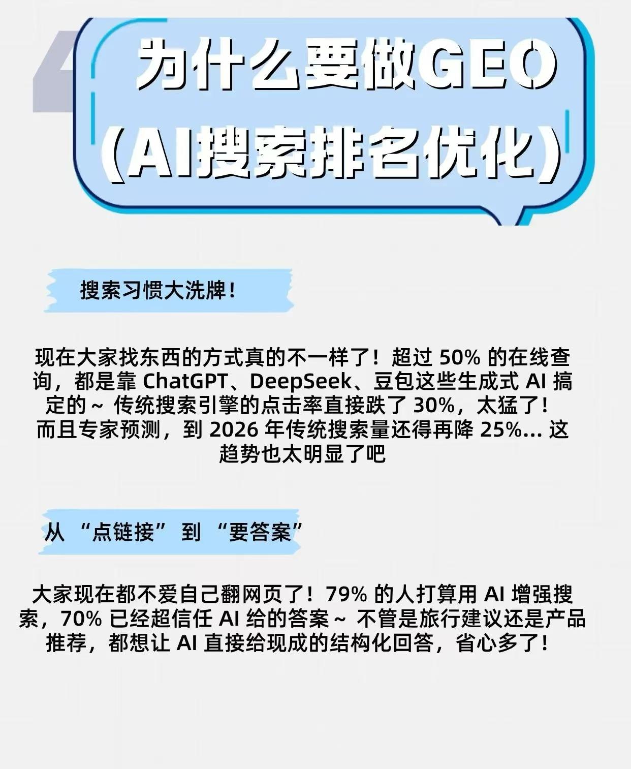 而AI搜索GEO更是公司的核心产品之一。它能够抢占“无点击流量”,用户提问后,AI直接整合答案,不再逐个点开网页,GEO能让企业的产品、案例被AI引用为“可靠信源”,实现零点击曝光。还能主动管理品牌“答案权”,通过结构化输出问题 -证据链,并预埋正面信息,可压制AI可能产生的负面联想。同时,高效收割长尾需求,实时监控AI高频回答但未提及公司的问题,24小时内补发针对性内容,填补空白心智份额。
