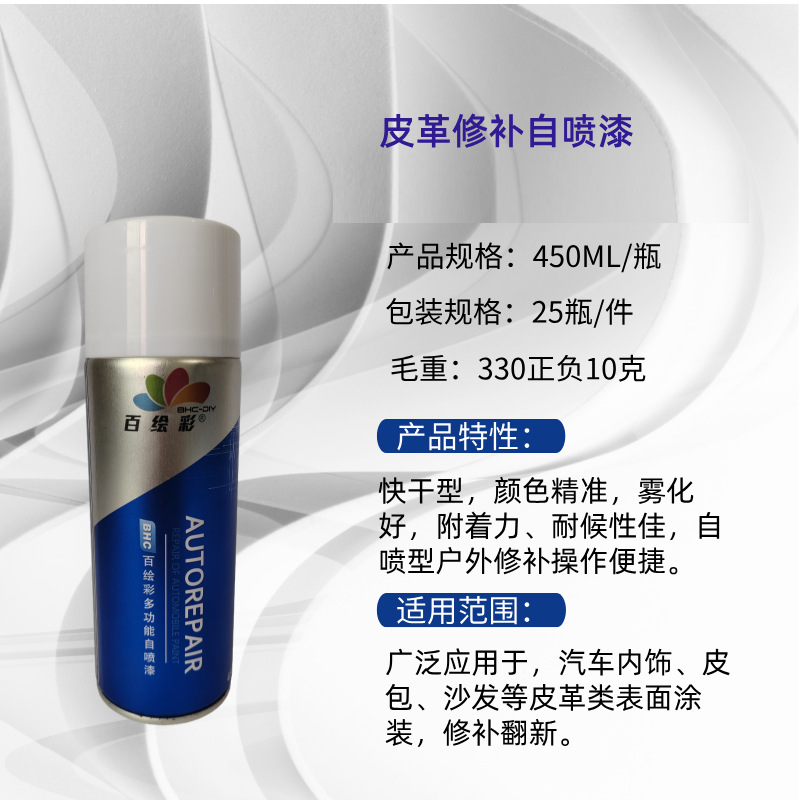 皮革修复剂:针对皮革制品的磨损、掉色等问题,益阳市赫山区百绘彩贸易有限公司的皮革修复剂能够起到很好的修复作用。它可以恢复皮革的原有色泽和质感,增强皮革的柔韧性和耐用性。无论是汽车座椅、沙发还是皮鞋等皮革制品,都可以使用该皮革修复剂进行修复。