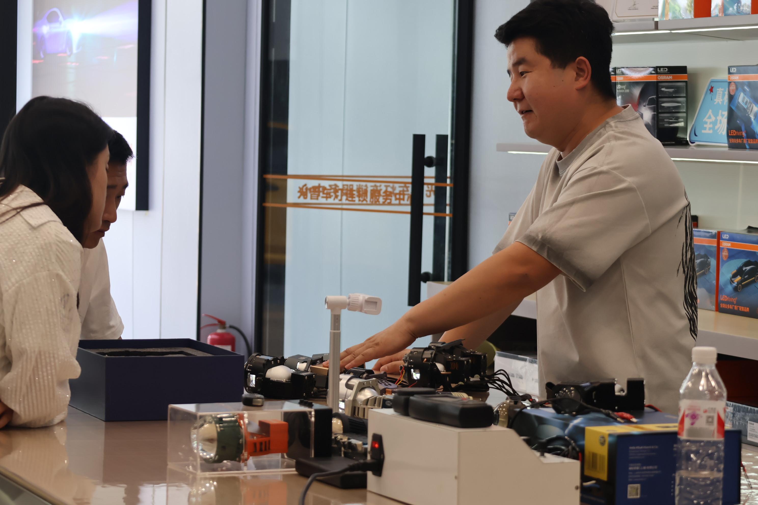 其经营项目十分丰富,涵盖激光大灯、LED大灯、LED双光透镜、透镜套装、氙气大灯、大灯总成、室内氛围灯、LED大灯、日间行车灯、天使眼恶魔眼、越野LED射灯(氛围灯倒车灯等等LED全系列)、雾灯、驱动器、装饰罩、定位支架、卡扣底座、线组、解码器、密封胶、防水盖、改灯附件等汽车灯光升级解决方案全系列配件,以及车灯培训基地。