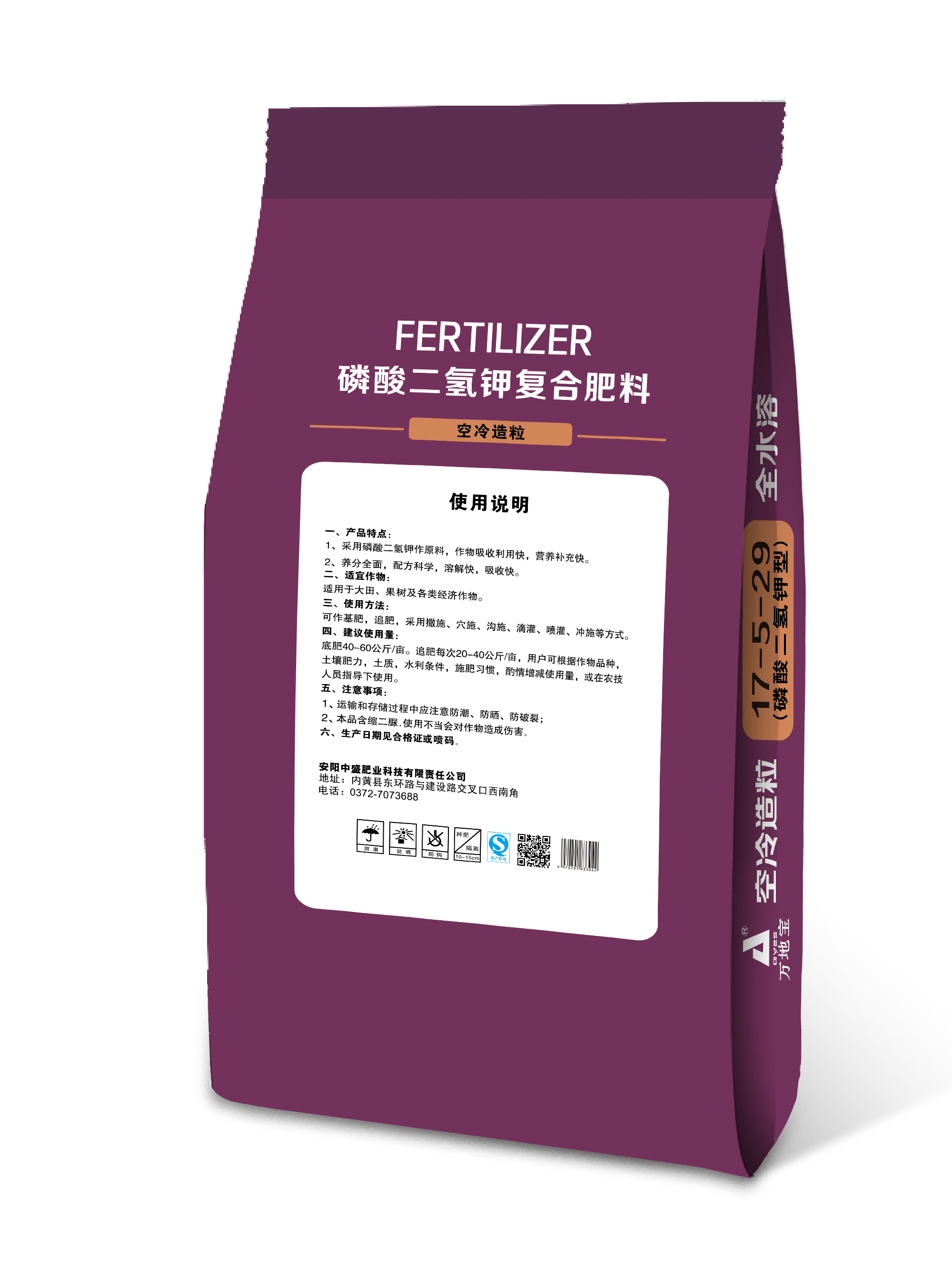 安阳中盛肥业是一家以生产高塔复合肥、硝基复合肥、磷酸二氢钾复合肥、黄腐酸钾复合肥、大量元素水溶肥等功能性肥料配方研发、生产、销售为一体的生产型企业。公司现有高塔复合肥生产线、大量元素水溶肥多条生产线,年产能近百万吨。其以“万地宝”为主导品牌的系列复合肥产品已畅销国内三十余省、市、自治区,获得了消费者的认可。