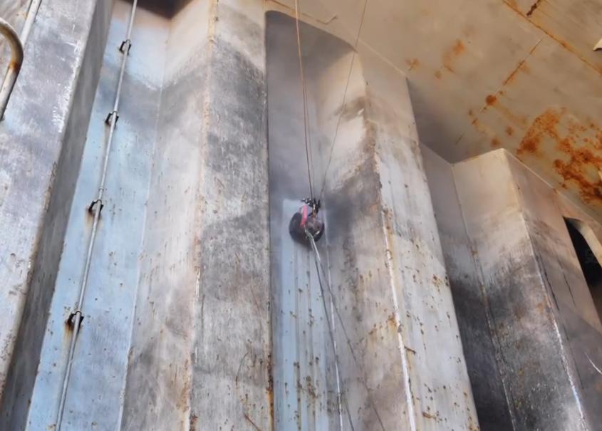 水射流清理机器人HighMate V40 Ultra系列,可覆盖全船98%以上外板表面除锈作业,船头曲面、舭龙骨、船尾反顶等除锈作业都能轻松应对,越障高度可达25mm,采用四轮组柔性磁吸附底盘,吸附稳定性高,支持手动作业、一键换道、智能导航三种模式,适应行业范围广。