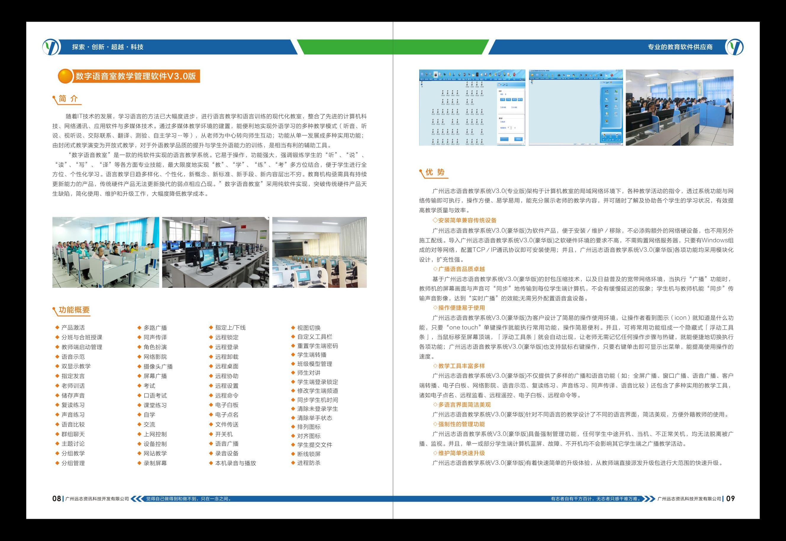 广州远志资讯科技开发有限公司是成立于广州高新技术产业区的高科技公司。目前公司拥有专业化的研发队伍多人,销售及服务网络遍布在全国各地。公司致力于高精技术研发,并以教育行业为主要发展领域。其主要核心技术以网络多媒体传输压缩、网络数据信息安全、系统控制、应用技术等为主。