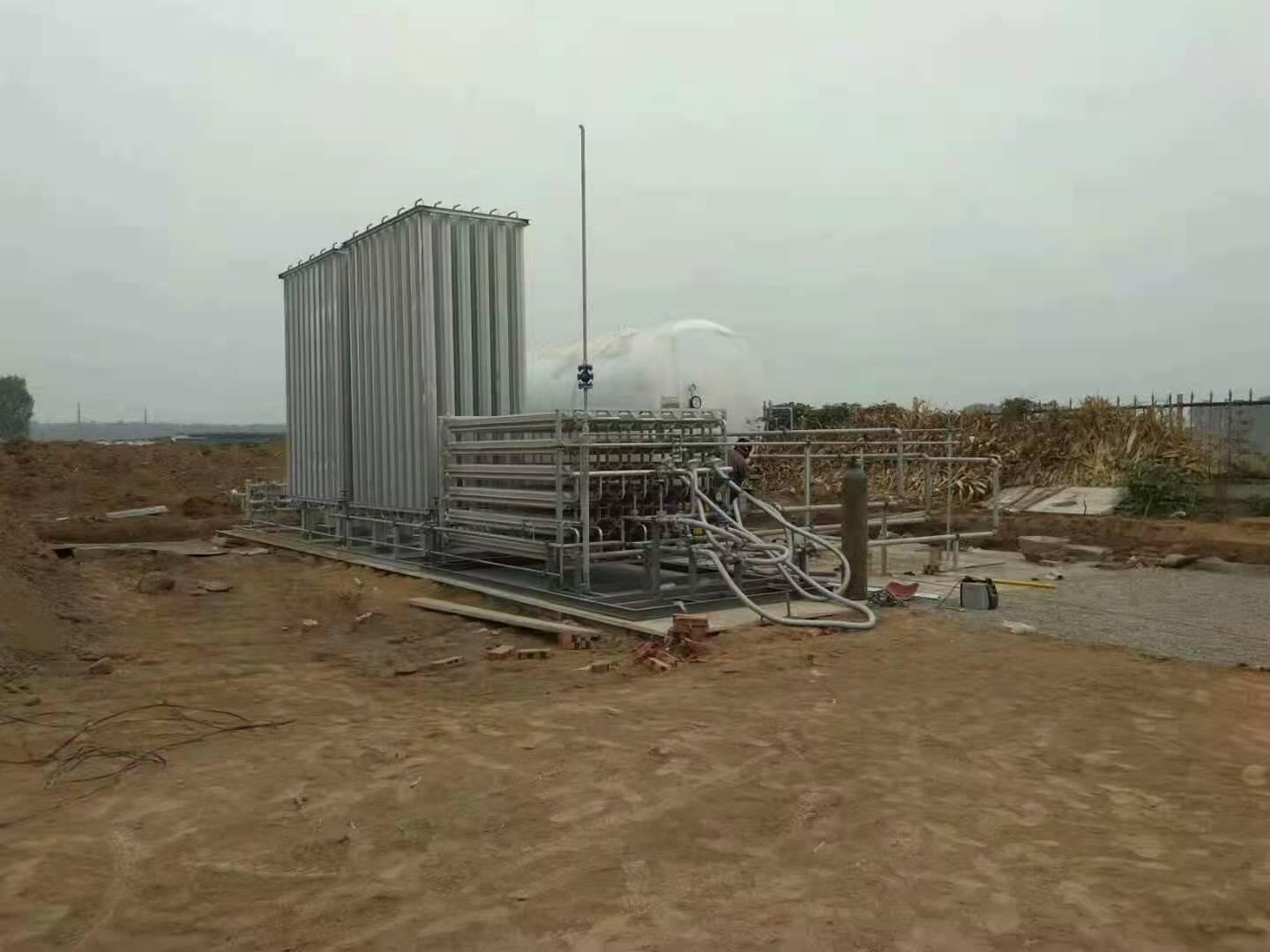 该公司的LNG气化调压站供气终端是针对城镇居民小区、中小型企业用户和大中型公建用户月用气需求而开发的天然气供应系统。除LNG储罐外的所有功能元件集成于橇座上,整个系统占地面积小,制造周期短,现场安装方便快捷。现在场安装工作量少,只有进出口管道连接以及外部电气的连接,操作维护方便,使用安全可靠,并可以实现远程遥控,无需现场值守。其产品特点众多,集LNG供气站的卸车增压,储罐增压、气化、调压、计量、加臭、电气控制等诸功能于一体;结构紧凑,占地面积小;支持远程监控,可实现无人值守;大气供热气化,降低运行成本;撬装一体式,安装方便,建设周期短;操作、维护简单;设备移动性强,可多次、多地重复使用。