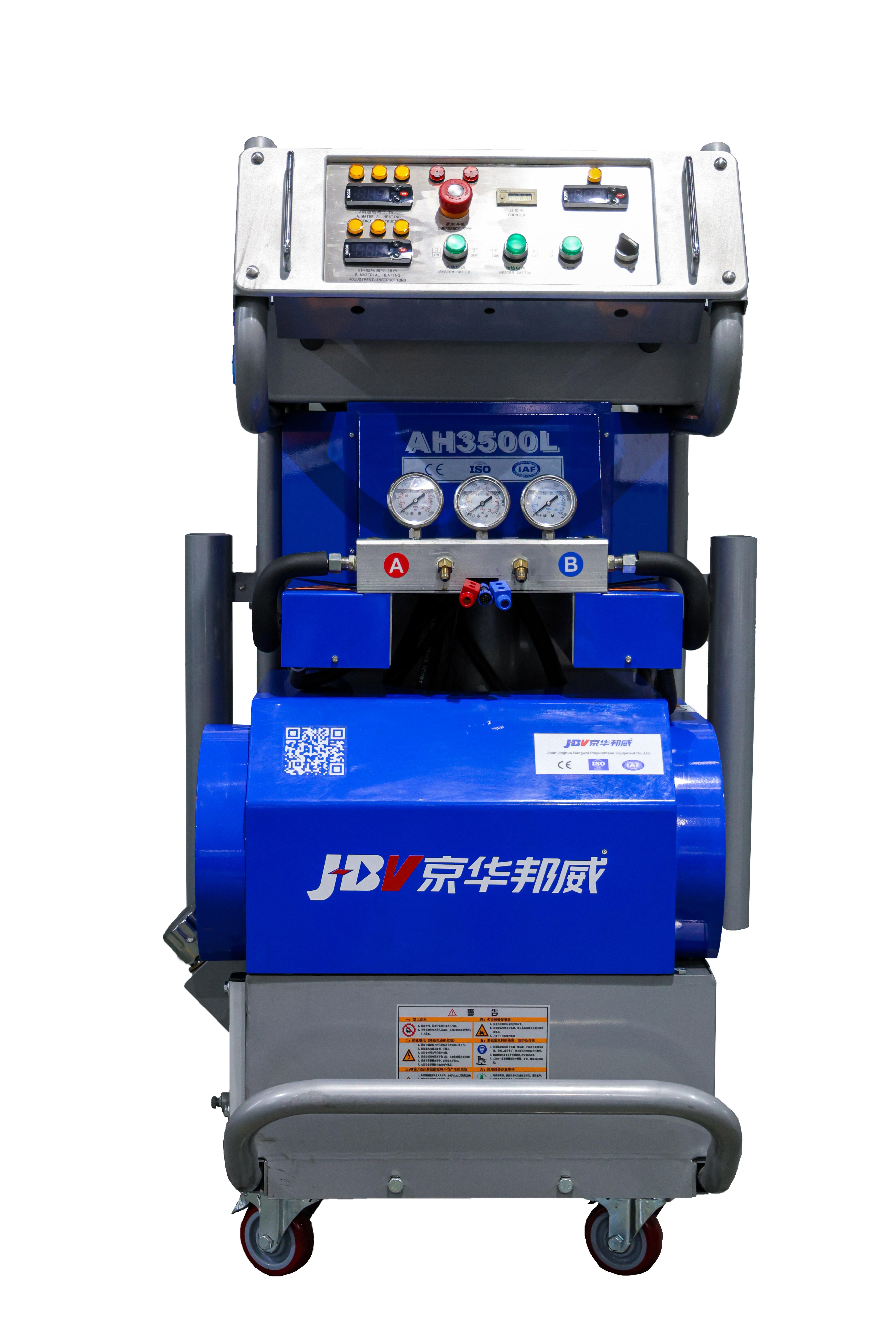 济南京华邦威聚氨酯设备有限公司的聚氨酯发泡机在质量和性能方面也有诸多亮点。在产品标准方面,公司已建立国际化的质量与环境管理体系,产品符合主要市场准入要求。在核心性能参数上,设备采用高压无气喷涂技术,雾化均匀,可节省原料约10%。部分型号具备1:1至1:2的可变比例调节功能,能适应不同粘度的原料。同时,配备强大的加热系统,能在寒冷环境下正常工作。