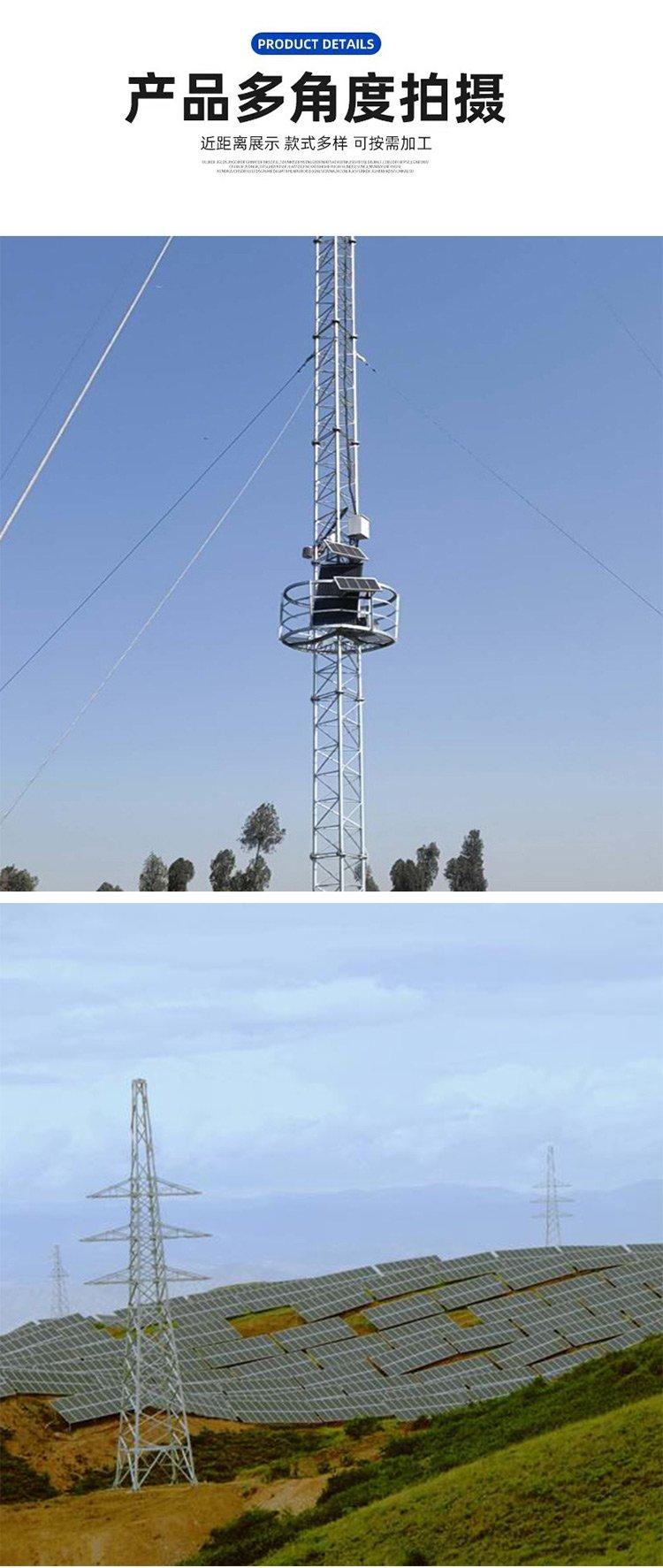 拉线塔:拉线塔是一种常见的钢结构塔,定做的拉线塔可以根据客户的具体需求进行设计和生产。它具有结构简单、造价较低的特点,广泛应用于电力、通信等领域。拉线塔通过拉线的支撑,能够增强塔体的稳定性,适应不同的地形和环境。