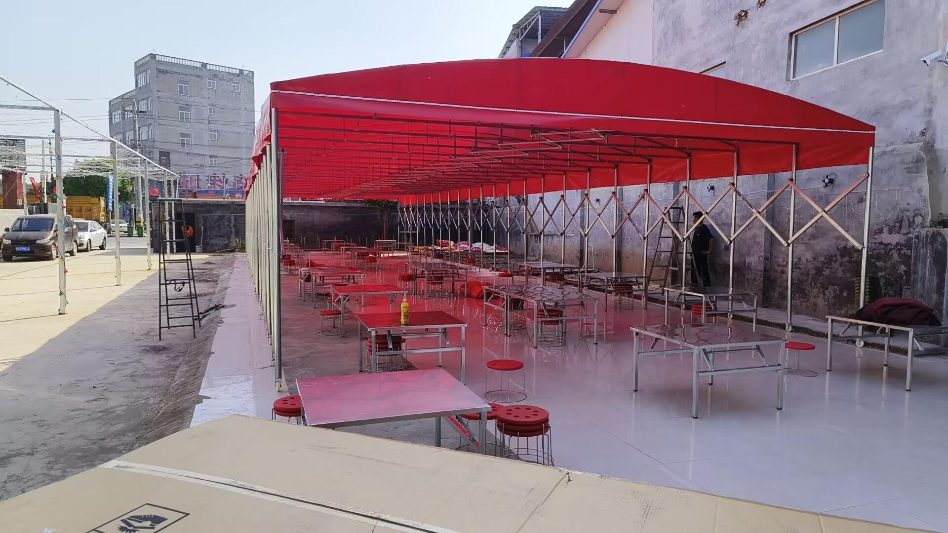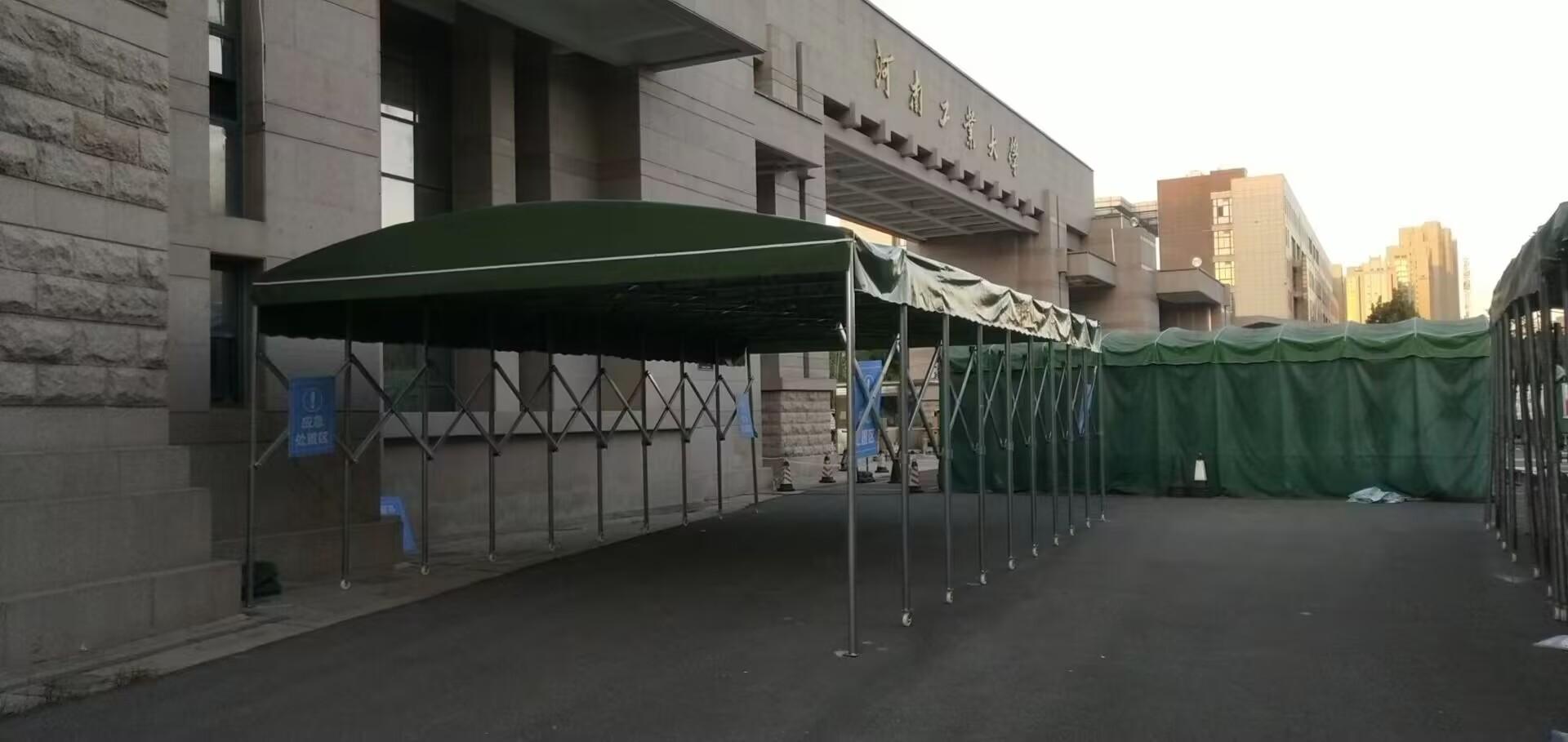 在学校和酒店等场所也有其身影,做过郑州永和伯爵五星级酒店的外摆棚,以及河南工业大学、郑州大学的门口等候区。同时,还为郑州江陵动力的厂房过道定制了2100平方的推拉棚,为河南顺丰总部的快递分拣提供了电动推拉篷。