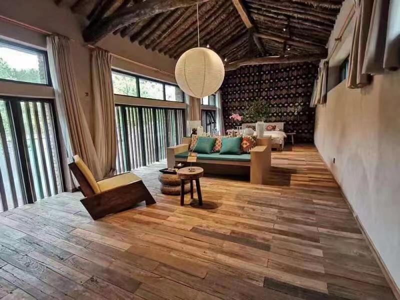 在产能方面,30亩厂区涵盖原材料仓储区、生产加工车间、成品堆放区及质检中心,年加工老榆木板材可达数千立方米,可稳定承接批量订单。这为大规模的民宿装修项目提供了有力的产能保障。
