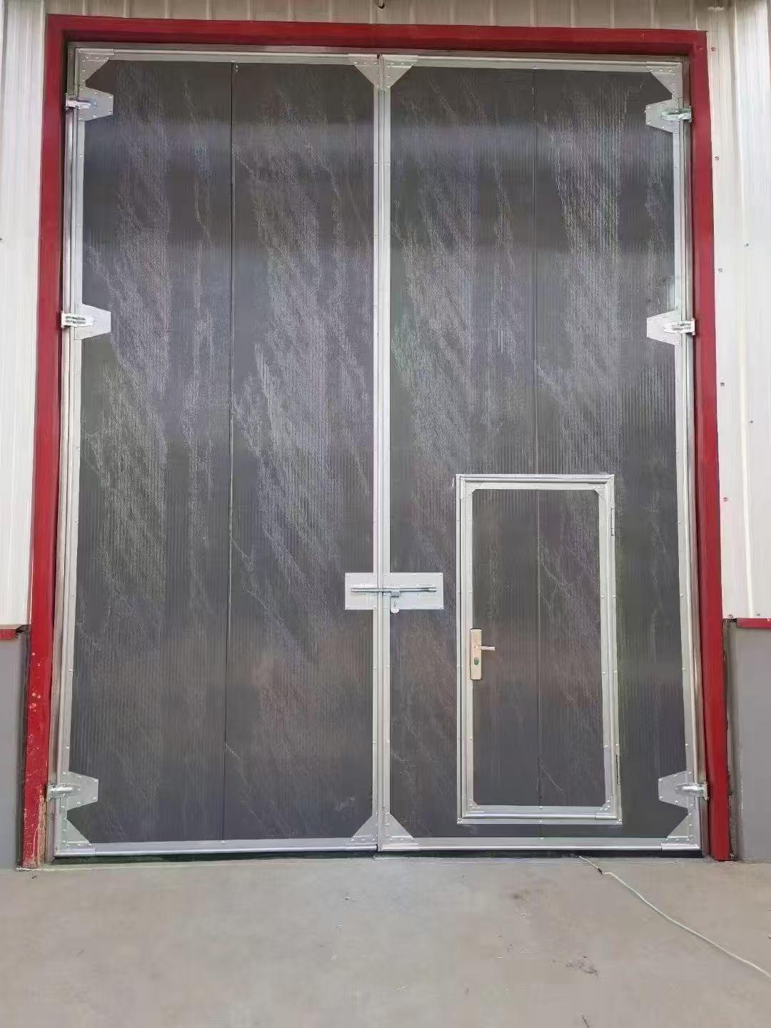 夹心工业门:夹心工业门具有良好的保温性能。任丘市恒玖门窗厂生产的夹心工业门中间填充了保温材料,能够有效地减少热量的传递,降低能源消耗。这种门适用于对温度控制有要求的仓库和厂房,如冷库、恒温车间等。
