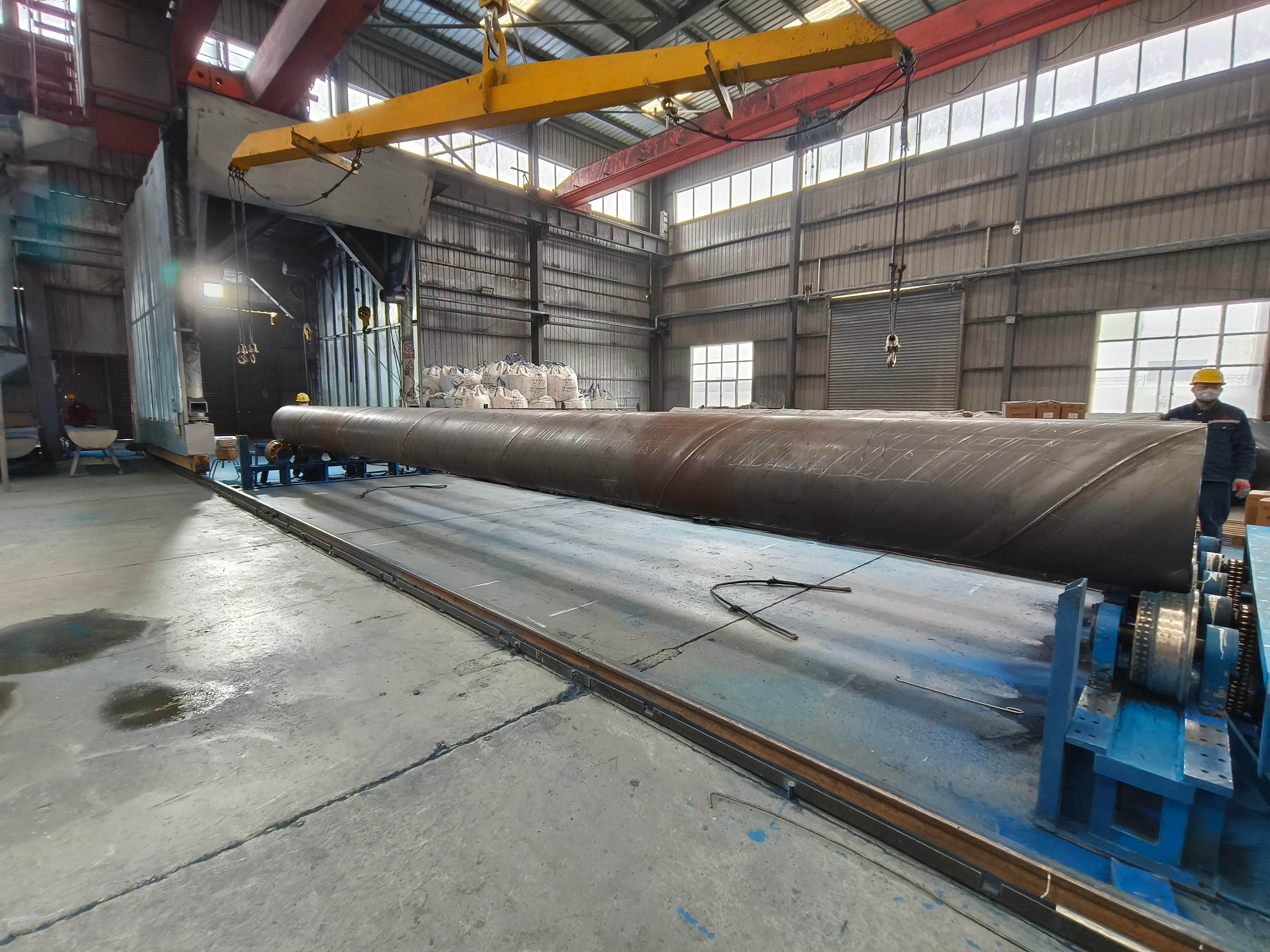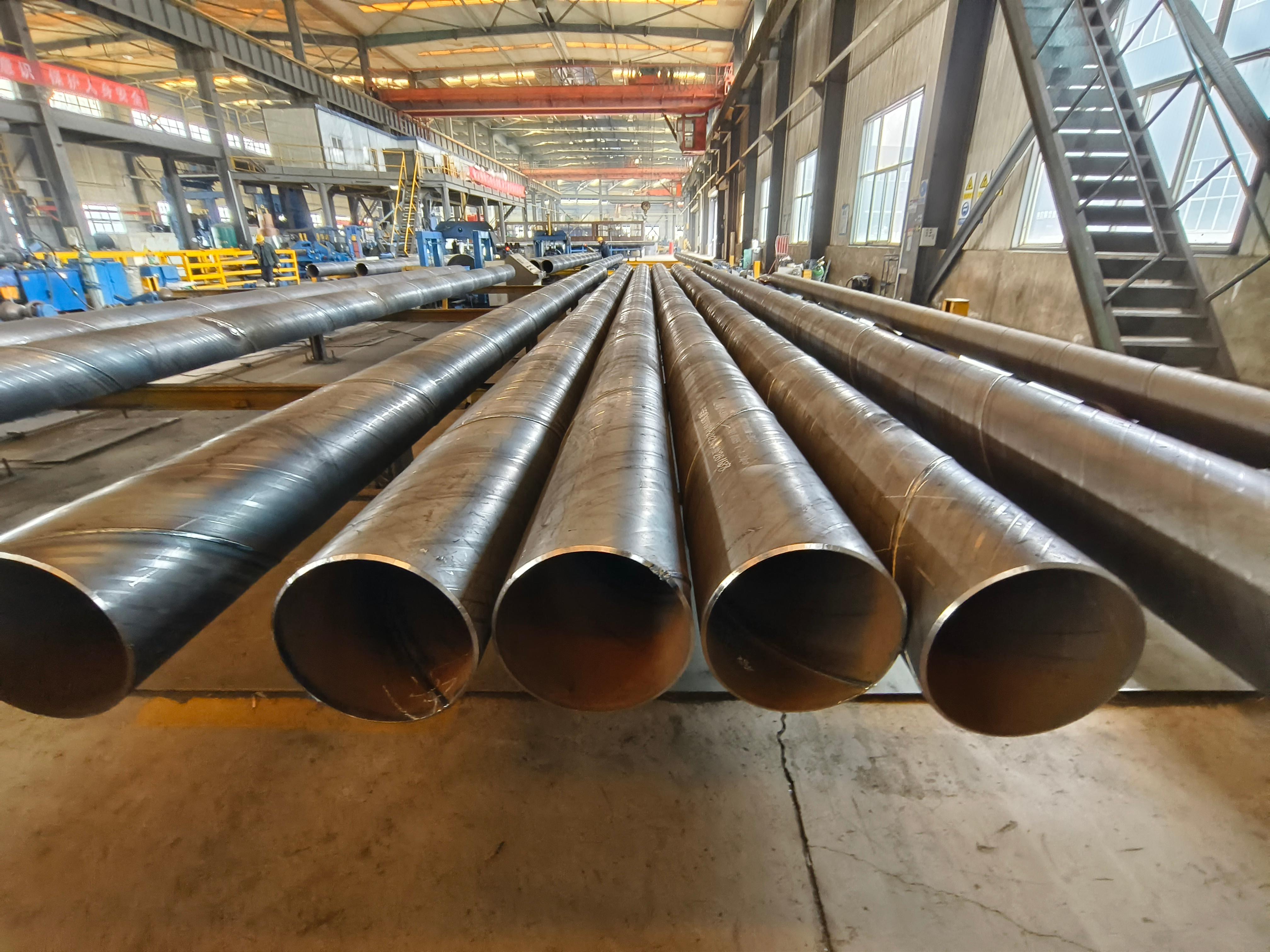 公司占地150000㎡,建筑面积50000㎡,拥有六条符合行业标准的生产线,可生产∮219—3620mm、壁厚6mm—25mm的双面埋弧螺旋焊管,年产能30万吨,同时提供3PE、涂塑复合钢管等防腐配套加工服务。