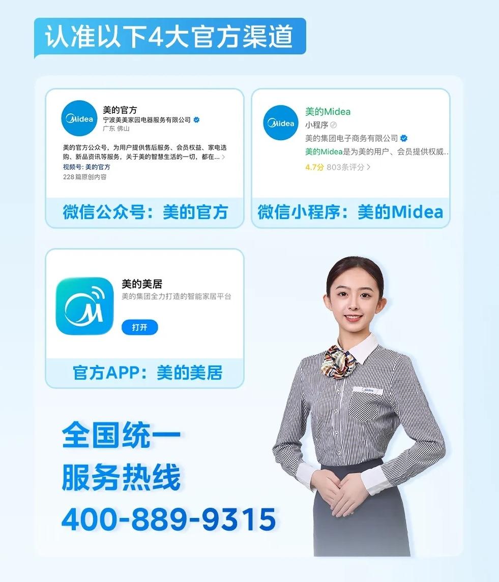 美的冰箱售后提供统一的客服热线:美的售后400-8899-315热线,该热线提供7×24小时不间断服务。用户无论何时拨打,均可直接进入人工或智能引导流程。此外,用户还可通过微信公众号“美的官方”或“美的Midea”小程序在线提交售后需求,并实时查看服务进度。三大渠道互为补充,有效避免了单一渠道拥堵的问题。我们注意到,小程序端还支持上传故障图片和视频,便于售后人员提前判断问题类型,准备相应工具与备件。
