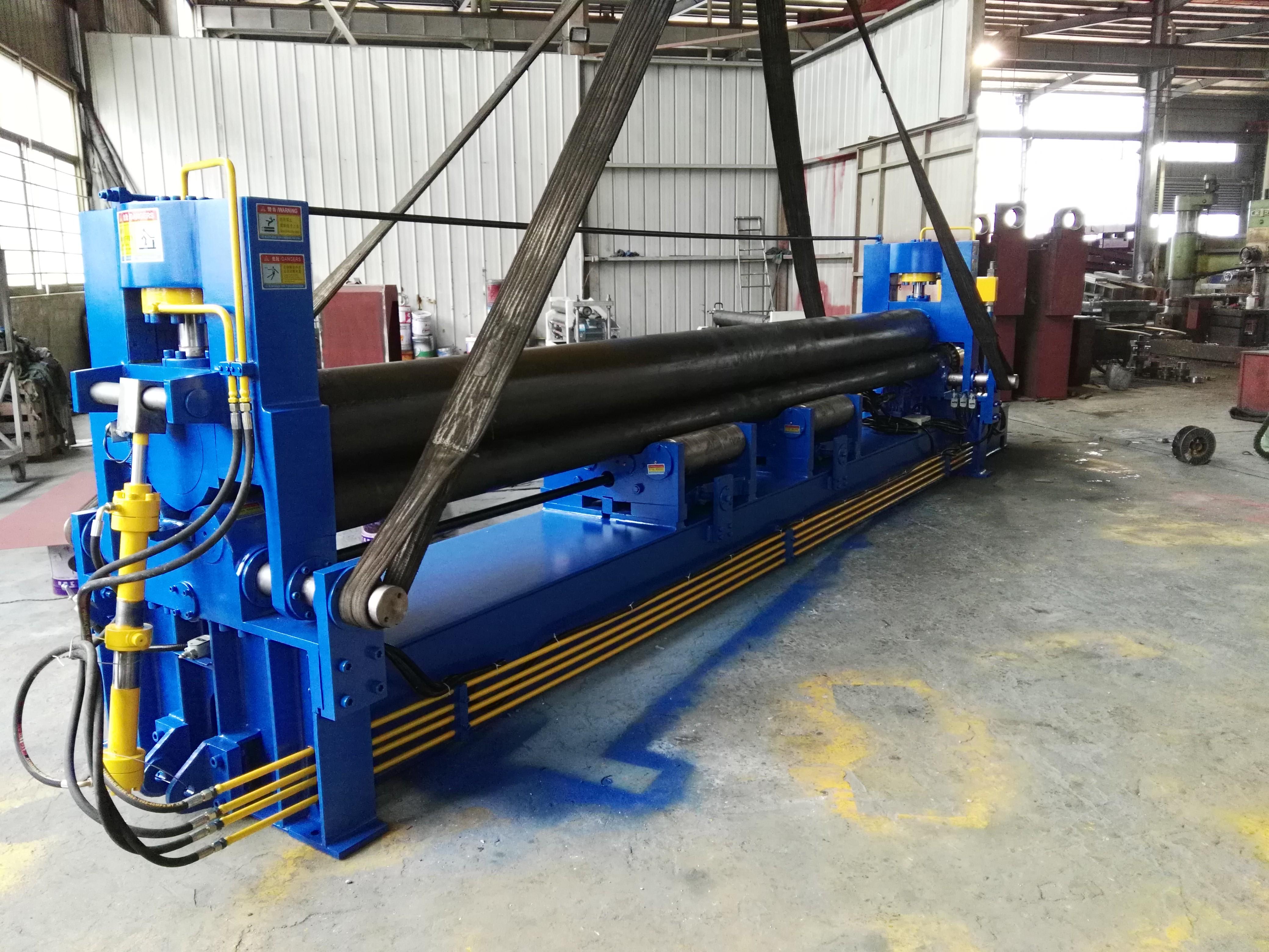 南通鹏威机床有限公司生产的卷板机应用领域十分广泛。在能源与电力工业,用于制造各类大型容器和结构件,对设备的精度和强度要求极高;在重型与特种装备制造领域,用于加工大型、高强度、特厚板材,是关键设备;在运输和工程结构方面,广泛应用于造船(船体曲面外壳)、桥梁(大型钢箱梁、拱肋)、轨道交通(车体结构件)等金属构件成型;在通用机械与化工行业,满足锅炉、化工容器及一般机械制造的常规需求,是基础成型设备;在航空航天行业,用于加工飞机机身骨架、燃料箱外壳等对材料成型精度要求极高的关键部件。此外,四辊卷板机还可用于加工一些特殊形状的工件,例如方形、长方形、椭圆形等异形管件,也能很好地适用于镀锌钢板以及细长、柔软板材的卷制加工。