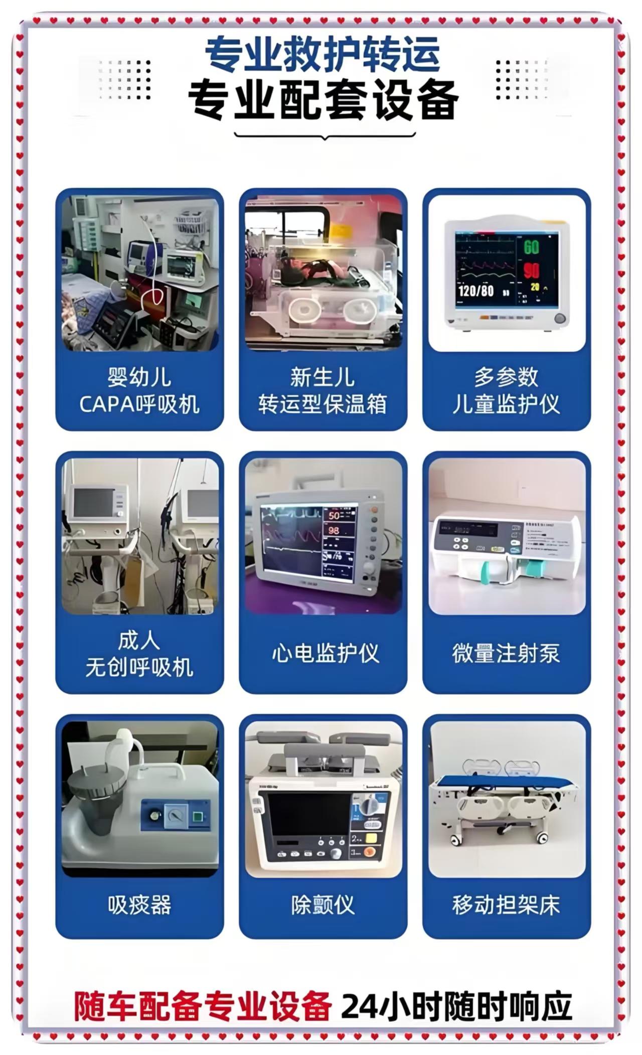 在专业服务保障上,公司始终将患者安全与服务质量放在首位。配备了经验丰富的随车医生与服务贴心的护士,他们均经过多年跟车实践与系统培训,可在转运途中及时开展各类急救措施,为患者生命安全保驾护航。每台救护车内都齐全配备专业医疗设备,如豪华担架床、大容量氧气瓶、自动吸痰机、全自动多功能呼吸机、多参数心电监护仪、骨科专用气垫等,满足不同患者的转运医疗需求。司机均经过严格考试合格后方可上岗,具备娴熟的驾驶技术和丰富的长途行车经验,每次派车均全程高速,确保转运效率,同时还提供免费上门看车服务,提升客户体验。
