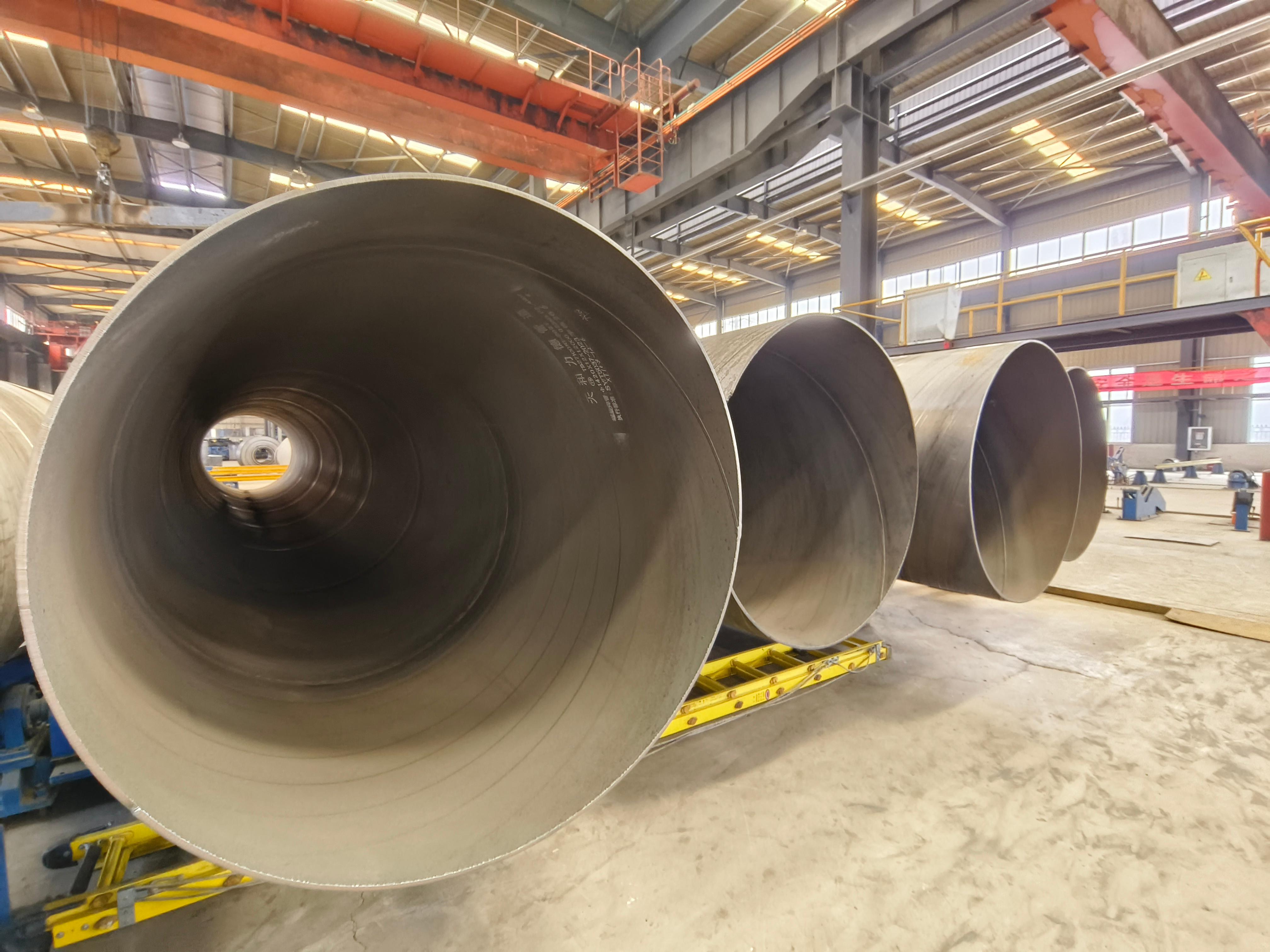 公司占地150000㎡,建筑面积50000㎡,拥有六条符合行业标准的生产线,可生产∮219—3620mm、壁厚6mm—25mm的双面埋弧螺旋焊管,年产能30万吨,同时提供3PE、涂塑复合钢管等防腐配套加工服务。