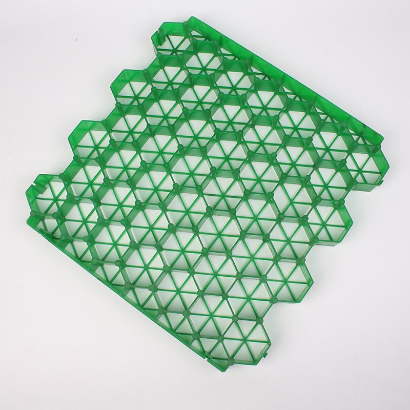 **聚乙烯植草格**:采用优质的聚乙烯材料制成,具有良好的耐腐蚀性和抗老化性能。这种植草格质地轻盈,安装方便,能够适应不同的地形和环境条件,广泛应用于园林景观、停车场等场所。
