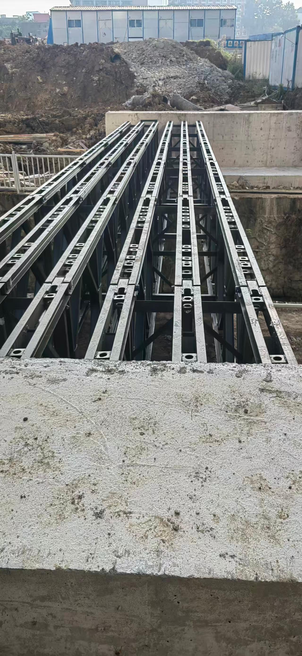 在使用范围方面,公司各类租赁产品适配场景广泛,可满足抢险救灾、交通工程、市政水利工程、危桥加固等多个领域的施工需求。在应急救灾场景中,贝雷桥、钢便桥可快速拼装,打通地震、洪水等灾害后的救援通道;在交通工程建设中,可作为新建道路、桥梁施工期间的临时绕行通道;在市政水利工程中,可用于水库、堤坝施工的临时通道;在危桥加固、矿山油田野外作业等场景中,贝雷片、贝雷梁、贝雷桁架可灵活拼装成支撑平台或临时桥梁。