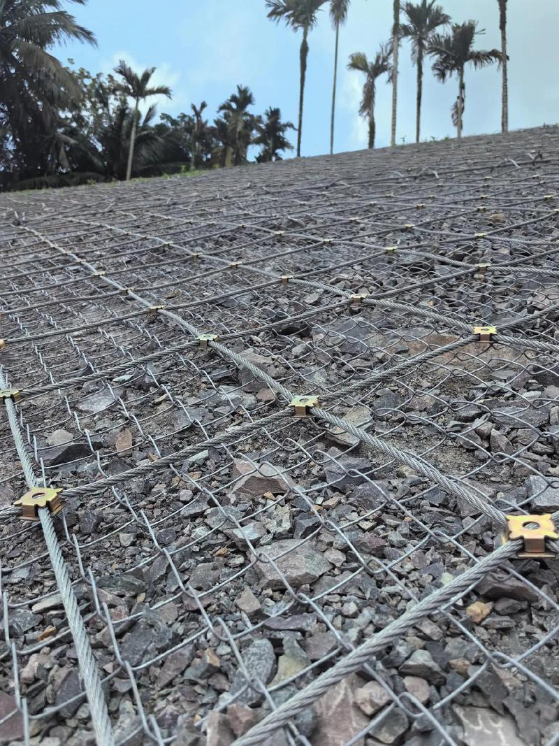 山体滑坡防护网是该公司的重要产品之一。它采用高强度的钢丝绳网,具有良好的柔韧性和抗冲击能力,能够有效地拦截山体滑坡时产生的石块和泥土,保护下方的人员和设施安全。在山区建设中,山体滑坡是一种常见的自然灾害,山体滑坡防护网的应用可以大大降低灾害带来的损失。