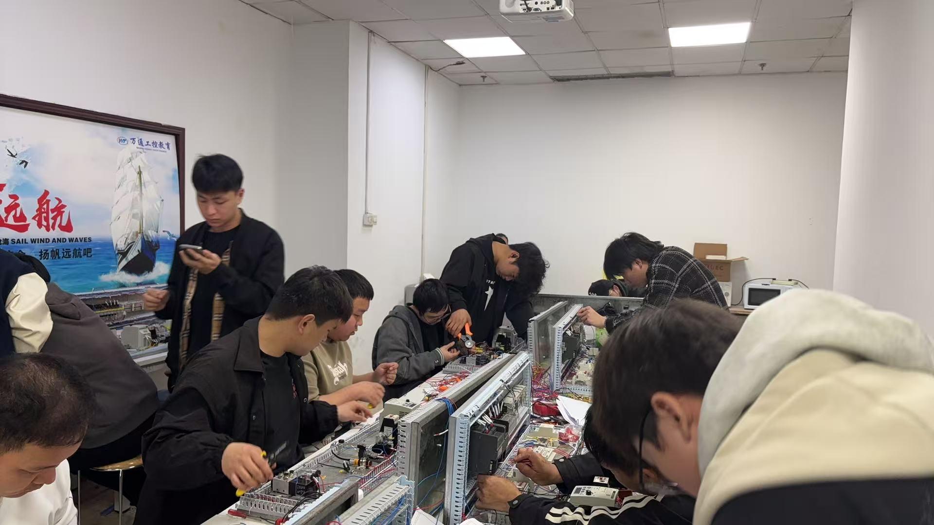 湖北万通职业培训学校在产品质量和性能方面表现出色。其核心课程丰富多样,涵盖基础层、核心层和进阶层。基础层课程包括电气装配、电工基础、电气识图、配电安装等,为学员打下坚实的理论基础;核心层课程有西门子PLC编程、EPLAN制图、变频器、触摸屏组态、通讯调试等;进阶层课程包含工业机器人(ABB/发那科/安川)、视觉检测、整线调试、典型项目实战等。教学模式采用理论 + 实操,实操课时≥60%,并且采用项目制教学,贴合企业真实产线,让学员能够更好地将所学知识应用到实际工作中。