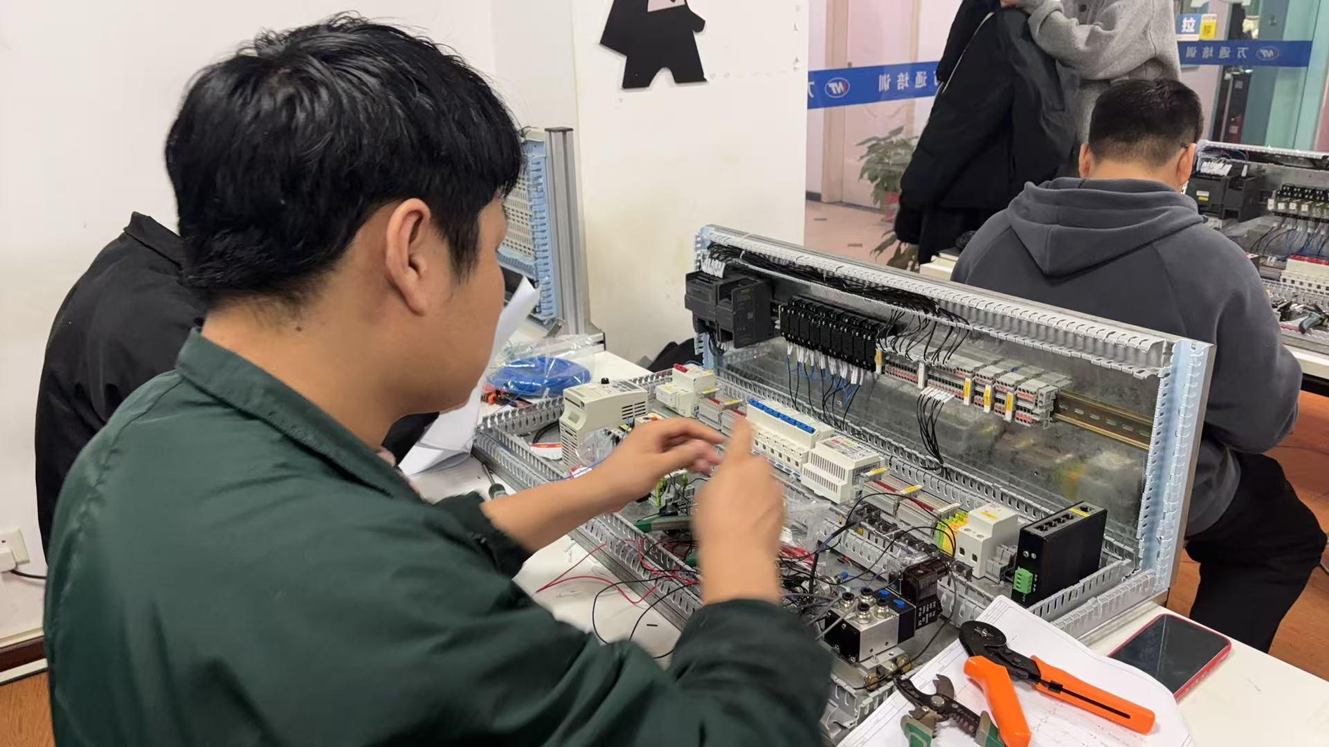 在产品质量和性能方面,湖北万通职业培训学校有着独特的优势。学校的核心课程内容丰富,涵盖了基础层、核心层和进阶层。基础层课程包括电气装配、电工基础、电气识图、配电安装等,为学员打下坚实的理论和实践基础。核心层课程聚焦于西门子PLC编程、EPLAN制图、变频器、触摸屏组态、通讯调试等关键技能,使学员能够掌握PLC技术的核心要点。进阶层课程则涉及工业机器人(ABB/发那科/安川)、视觉检测、整线调试、典型项目实战等高级内容,帮助学员提升综合能力,更好地适应企业的实际需求。