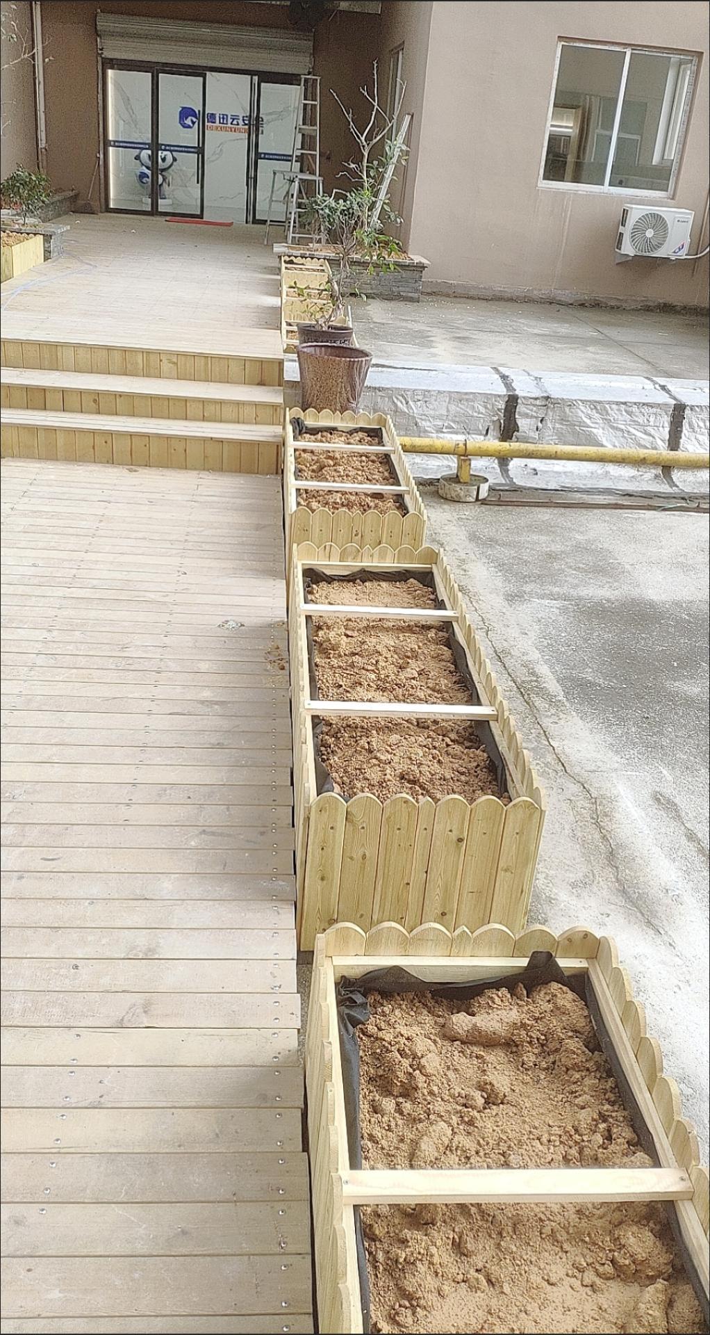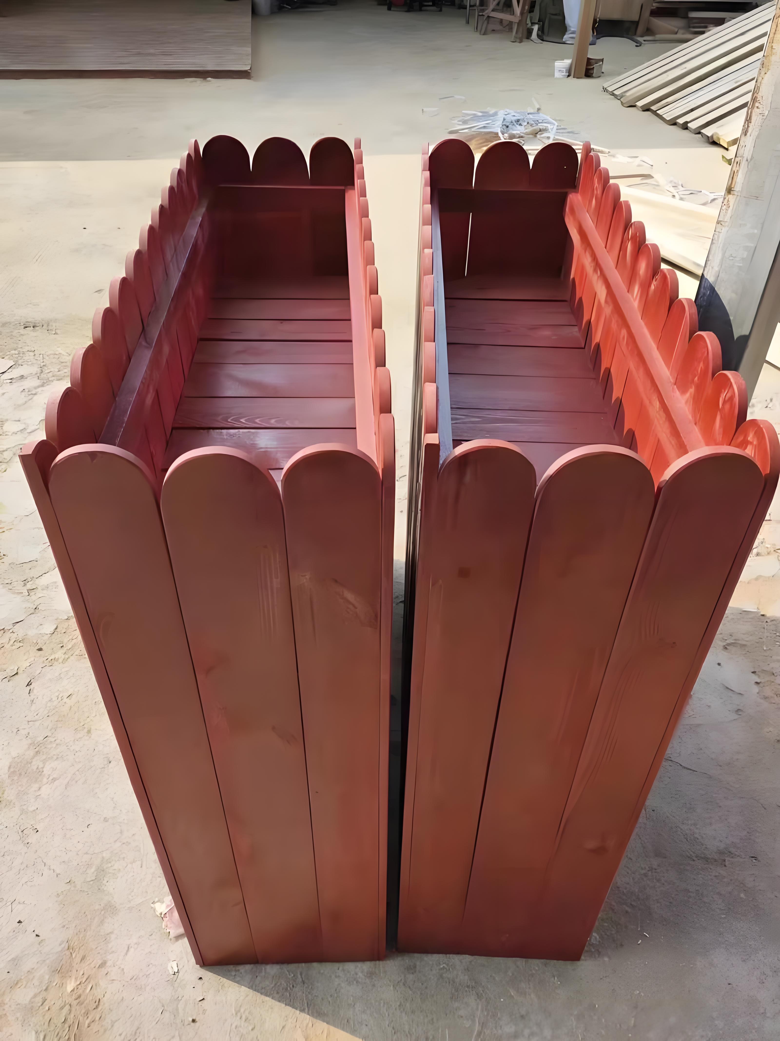 木质花箱方面,有各种尺寸木质花箱、防腐木木质花箱、长方形木质花箱等。这些木质花箱适用于室外、公园等场所,起到美化环境的作用。防腐木材质的花箱具有较好的耐久性,能够抵抗自然环境的侵蚀,延长使用寿命。