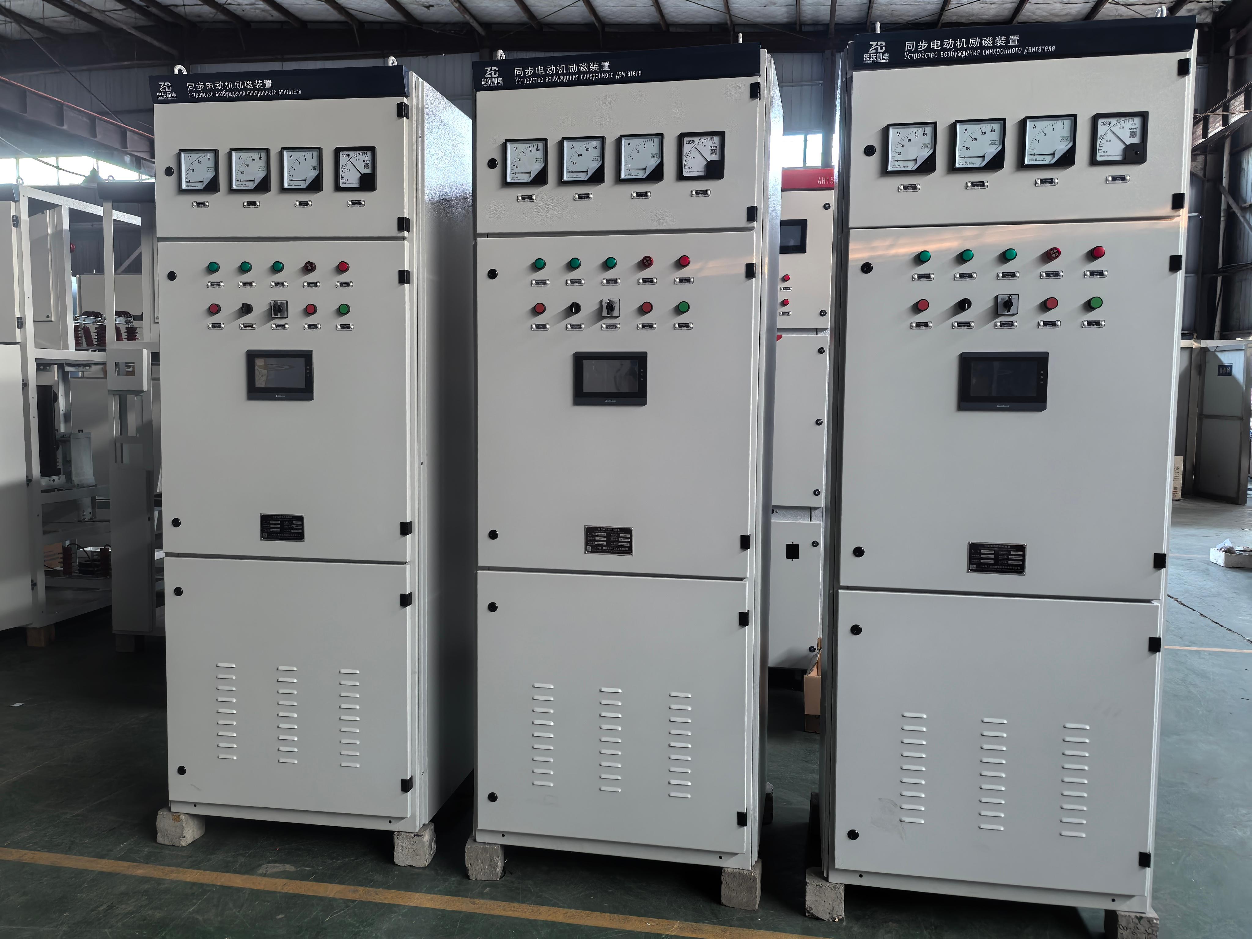 襄阳忠东机电设备有限公司的主营产品包括有刷励磁柜、水泵励磁柜、无刷励磁柜、压缩机励磁柜和双通道励磁柜。有刷励磁柜在一些对励磁要求较为特殊的场合发挥着重要作用,它能够为电机提供稳定的励磁电流,保障电机的正常运行。水泵励磁柜则专门针对水泵电机的特点进行设计,可有效提高水泵的运行效率和稳定性。无刷励磁柜采用先进的无刷技术,减少了电刷的磨损和维护成本,提高了设备的可靠性和使用寿命。压缩机励磁柜为压缩机电机提供精准的励磁控制,确保压缩机能够高效、稳定地工作。双通道励磁柜具有双路励磁控制功能,可根据不同的工况需求灵活调整励磁参数,提高设备的适应性和性能。