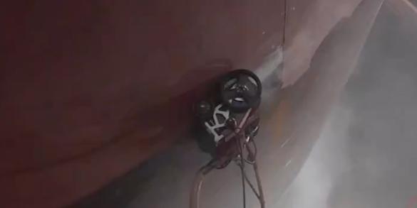 水射流清理机器人HighMate V40 Ultra系列:可覆盖全船98%以上外板表面除锈作业,船头曲面除锈作业,舭龙骨除锈作业,船尾反顶除锈作业等各类曲面。越障高度可达25mm,四轮组柔性磁吸附底盘吸附稳定性高,支持手动作业一键换道,智能导航三种模式,可用于各类钢板表面作业,作业高效安全可靠。