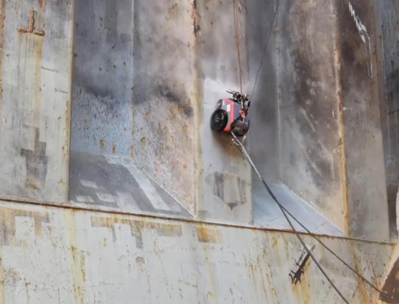 水射流清理机器人HighMate V系列是史河机器人的一款重要产品。它具有高效智能、降本增效的特点。其结构简单拆装方便,越障高度≤18mm,负载重量150kg。该产品采用自主研发技术,能够实现自主导航,一键换道,规划区域自动作业,除锈效率可达55平米/小时,可适应曲率半径表面4m,整机防护等级≥IP65,能达到Wa2.5/WJ2.0近白级处理,还具备污水回收功能,绿色环保。一套作业方案适用于全船90%以上区域作业,可用于船舶、石化等钢结构表面锈蚀、旧涂层的清理。