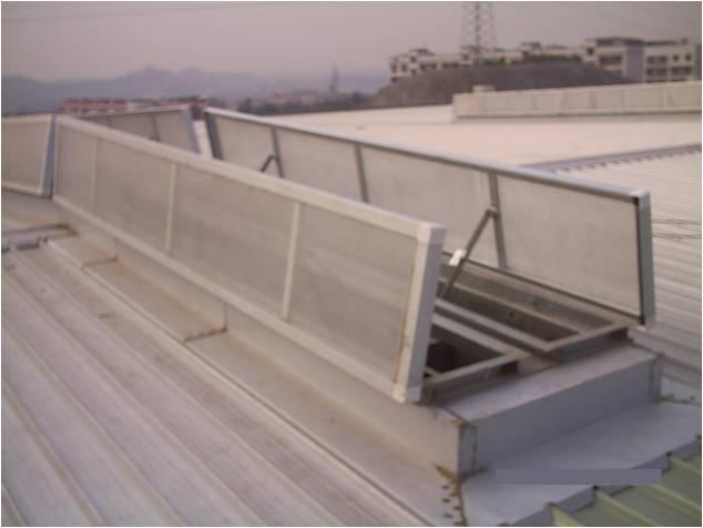 采光排烟天窗(侧开型)适用于一般通风量要求的6米柱距纵向天窗的工业厂房,其大开启角度能达到45°。