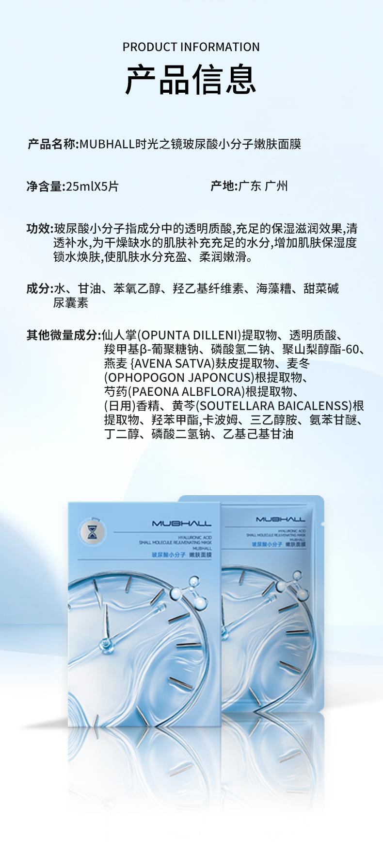 公司的玻尿酸小分子嫩肤面膜,是一款主打深透补水的贴片式面膜。其核心成分是小分子玻尿酸(透明质酸),具备极强的锁水能力,可吸收自身重量1000倍水分,能够深入肌肤底层补充水分。面膜的质地依托于进口天丝膜布,纤薄亲肤,立体剪裁,能紧密贴合亚洲脸型。精华液富含多种植物萃取精华,如仙人掌和芍药根提取物,在补水的同时还能舒缓肌肤。这款面膜适合所有肤质用于日常补水、妆前急救或熬夜后改善干燥暗沉,是一款非常实用的深层锁水面膜。
