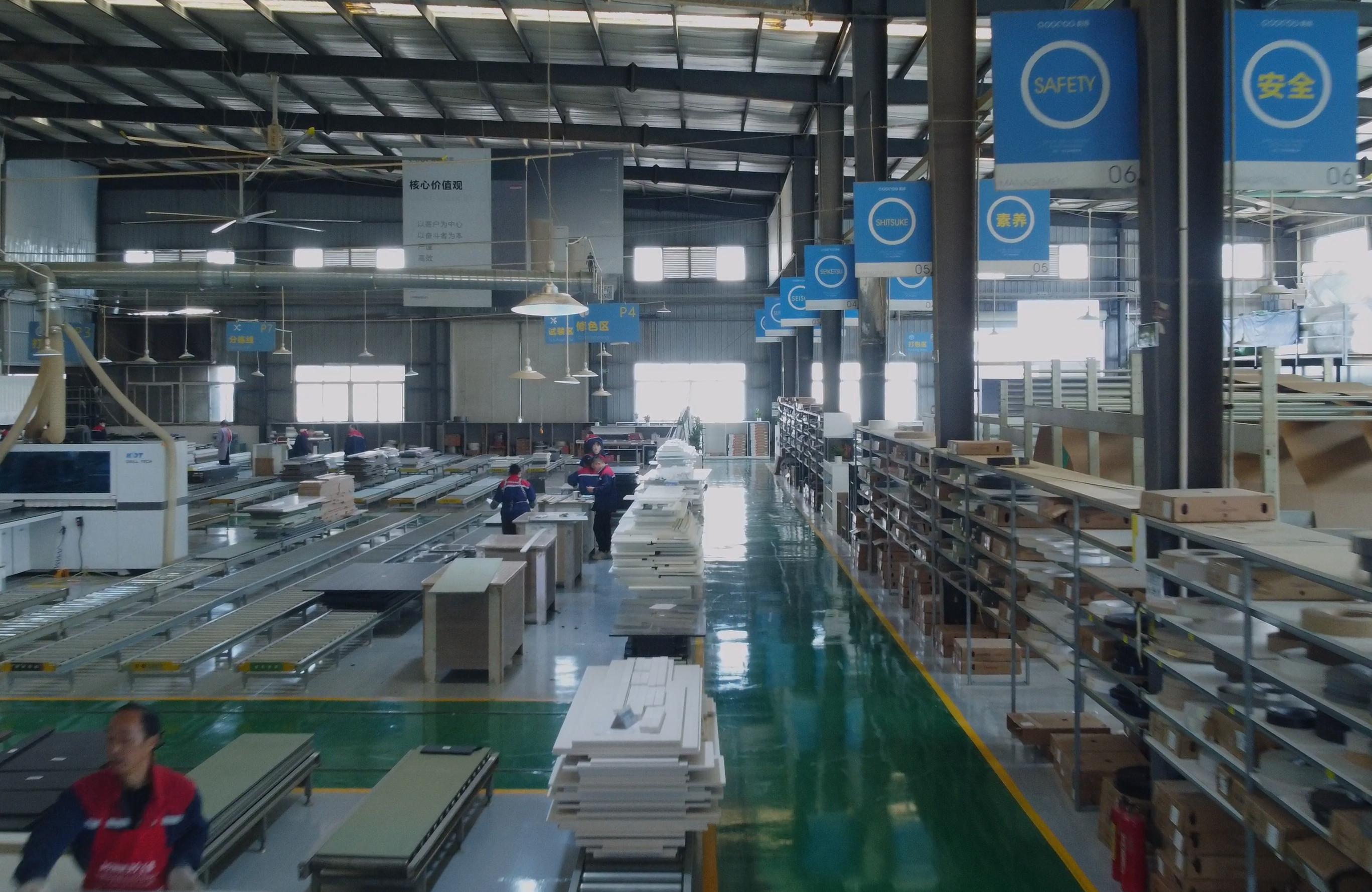 构库家居的生产位于成都市新都区好迪材料商城C区,工厂占地22000㎡,采用工厂 - 办公区一体化办公,管理模式高效迅速,能够快速掌握工厂实际生产情况。