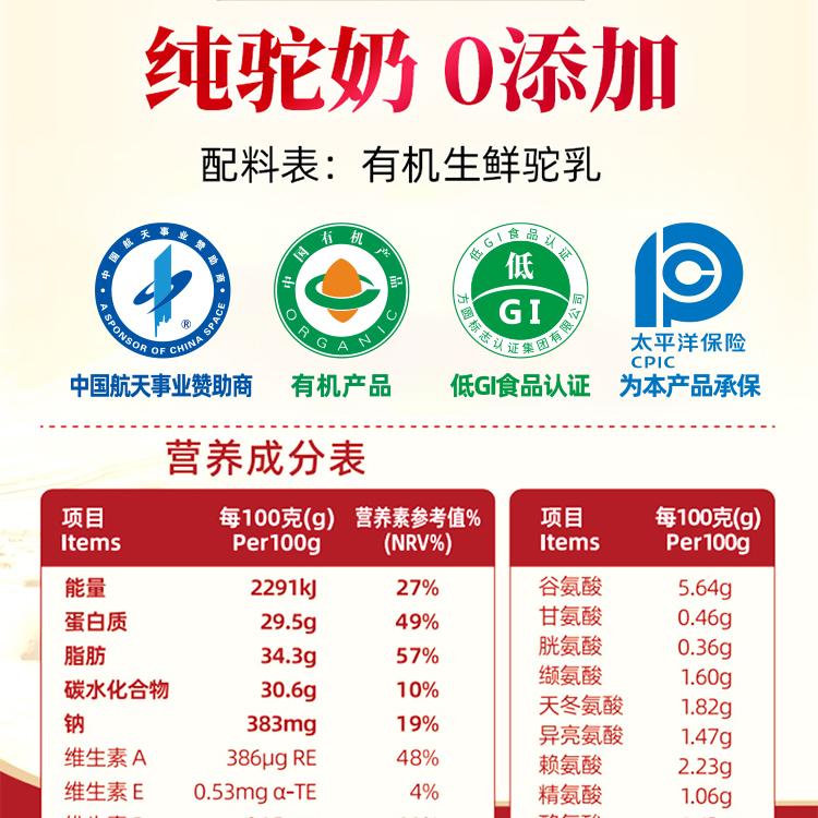 该公司主营安全、营养的驼乳制品,拥有包含液态奶、乳粉、奶片、发酵驼乳、含乳饮料等品类在内丰富的产品矩阵。它还是有机纯驼乳粉、益生菌驼乳粉、初段驼乳粉、儿童驼乳粉的骆驼乳制品生产基地。丰富的产品线能够满足不同消费者的需求。