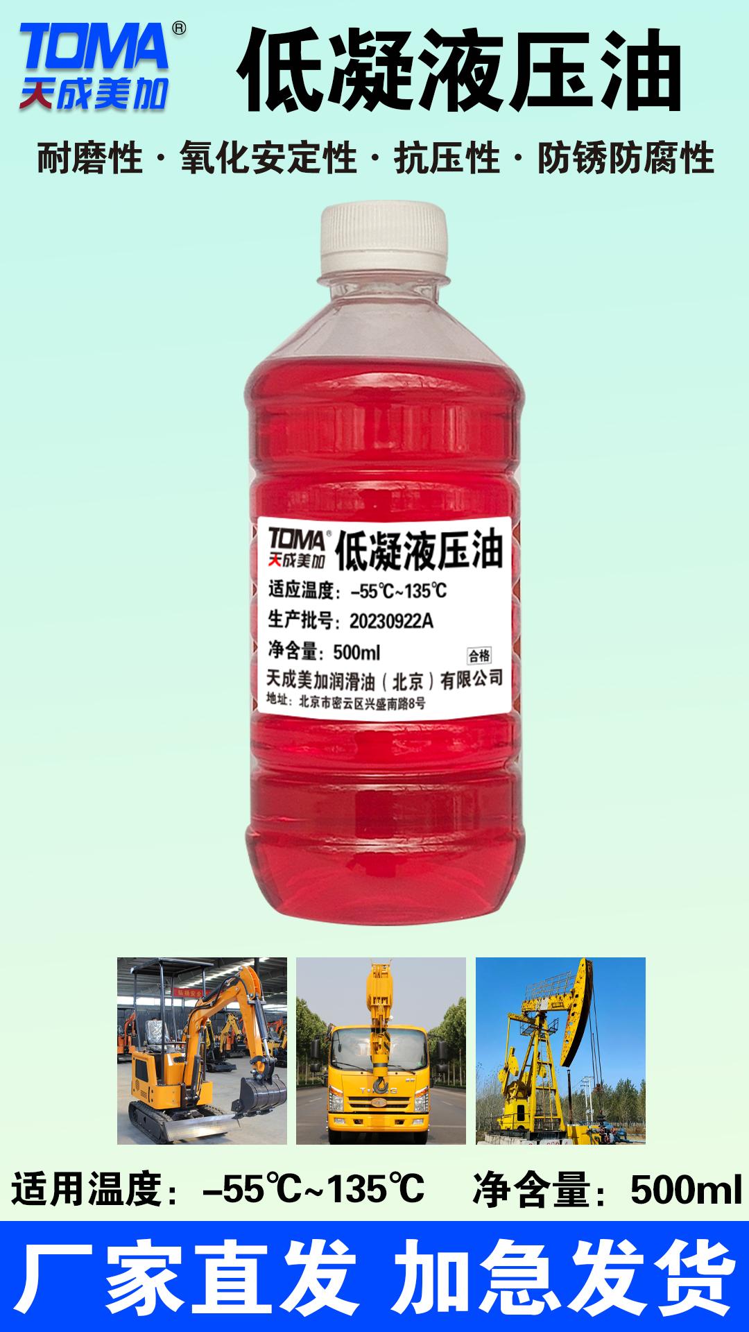 抗磨液压油:抗磨液压油是天成美加的核心产品之一。它采用了先进的配方和生产工艺,具有出色的抗磨性能和抗腐蚀性能。在高负荷、高压力的工作环境下,能够有效保护液压系统的各个部件,减少故障的发生,提高设备的可靠性和稳定性。