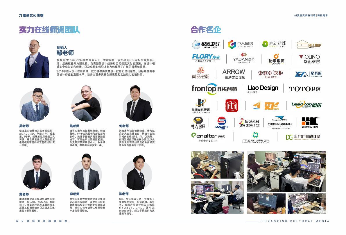 公司拥有行业顶流团队。创始人邹明携15年室内/家具设计经验,曾掌舵知名设计集团副总裁岗位,主导设计战略与创意体系搭建;联合创始人赵九鸿积淀30余年家具行业管理智慧,获评“家具行业优秀职业经理人”,手握海量产业资源;全国讲师天团更是实战精英云集,前腾讯模型总监芸茉、重大工程CG技术负责人林得、全国3000 +场渲染培训经验的Anna等坐镇授课。中山校区在此基础上,组建专属**师资团队,形成“总部 + 校区”双师资保障。