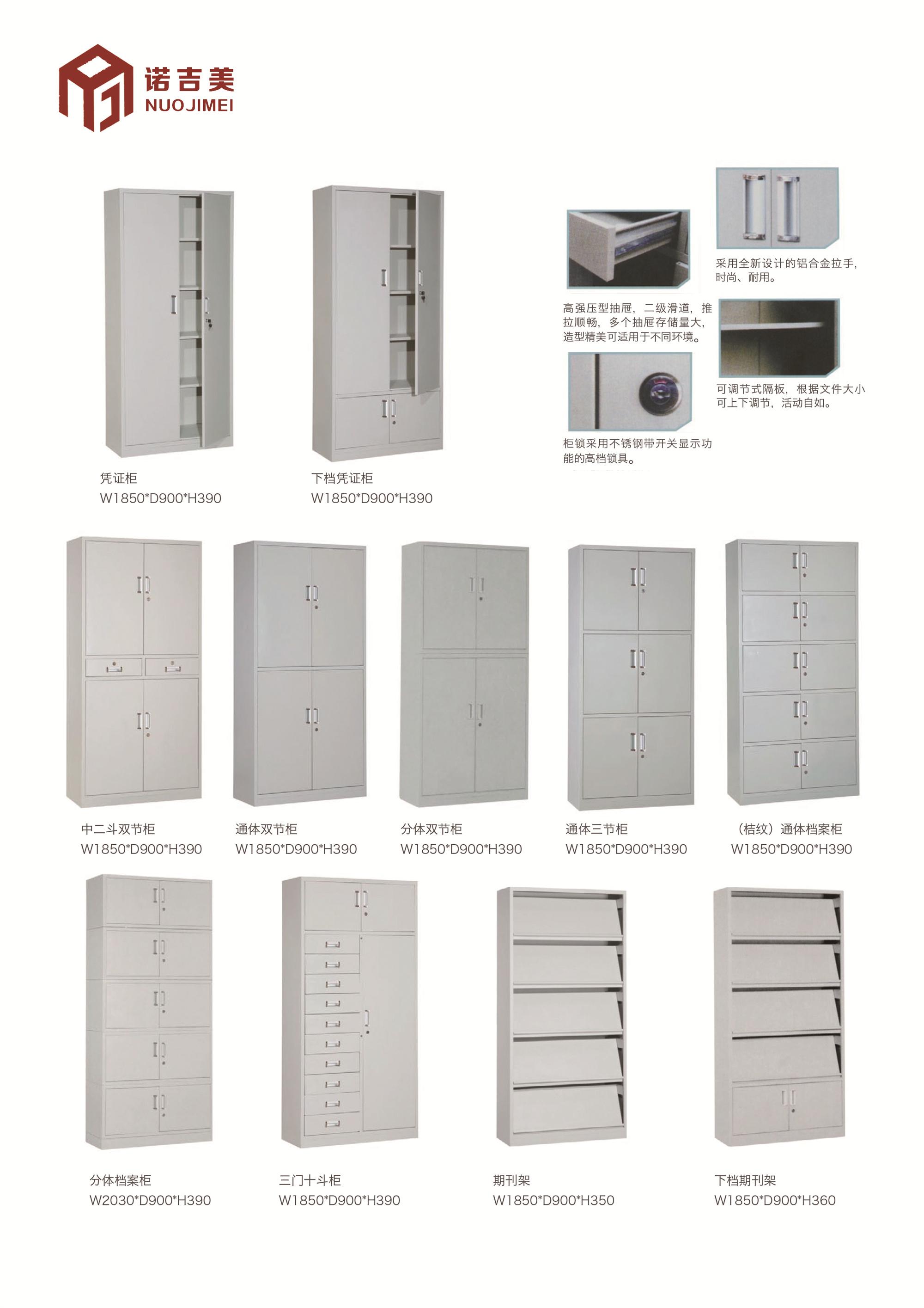 诺吉美的主营产品丰富多样,涵盖了钢木家具、办公屏风、电脑桌、文件柜、更衣柜、资料柜、上下床、阅览桌、校用设备、图书馆设备、底图柜等。其产品式样多、质量优、价格合理,并且采用独特的直销模式,得到了广大顾客的一致好评。