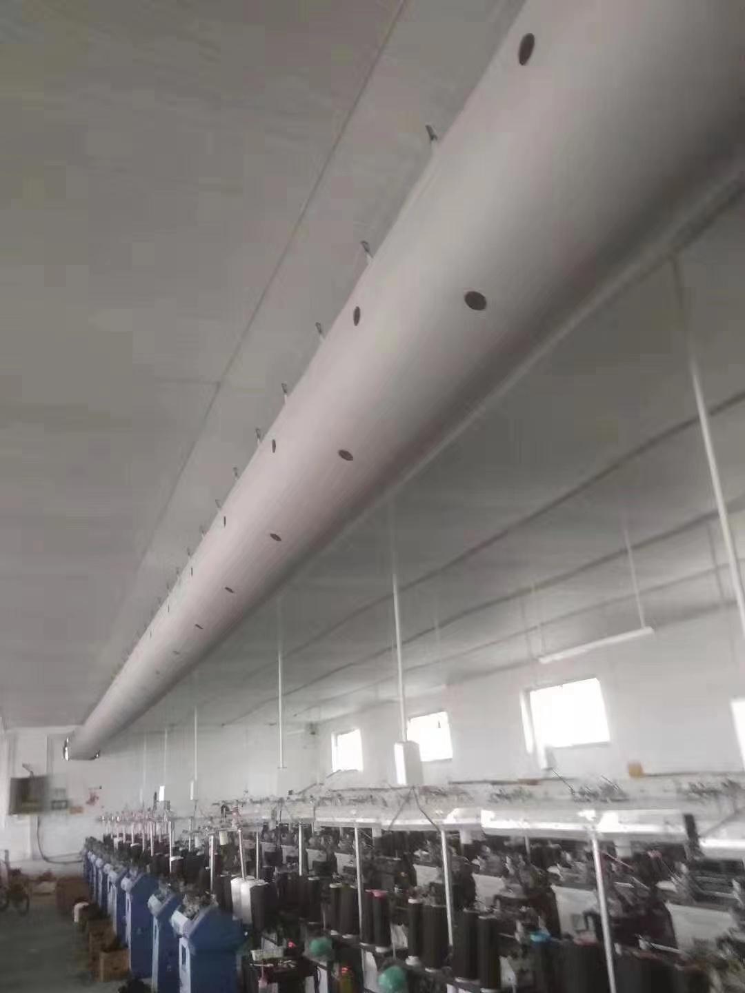 车间布袋风管:适用于各类车间的通风需求。车间通常空间较大,人员和设备密集,对通风要求较高。车间布袋风管具有良好的通风性能,能够快速有效地将新鲜空气输送到车间的各个角落,保证车间内空气的流通和质量,为员工创造一个舒适、健康的工作环境。同时,其耐用性强,能够适应车间复杂的工作环境,长期稳定运行。