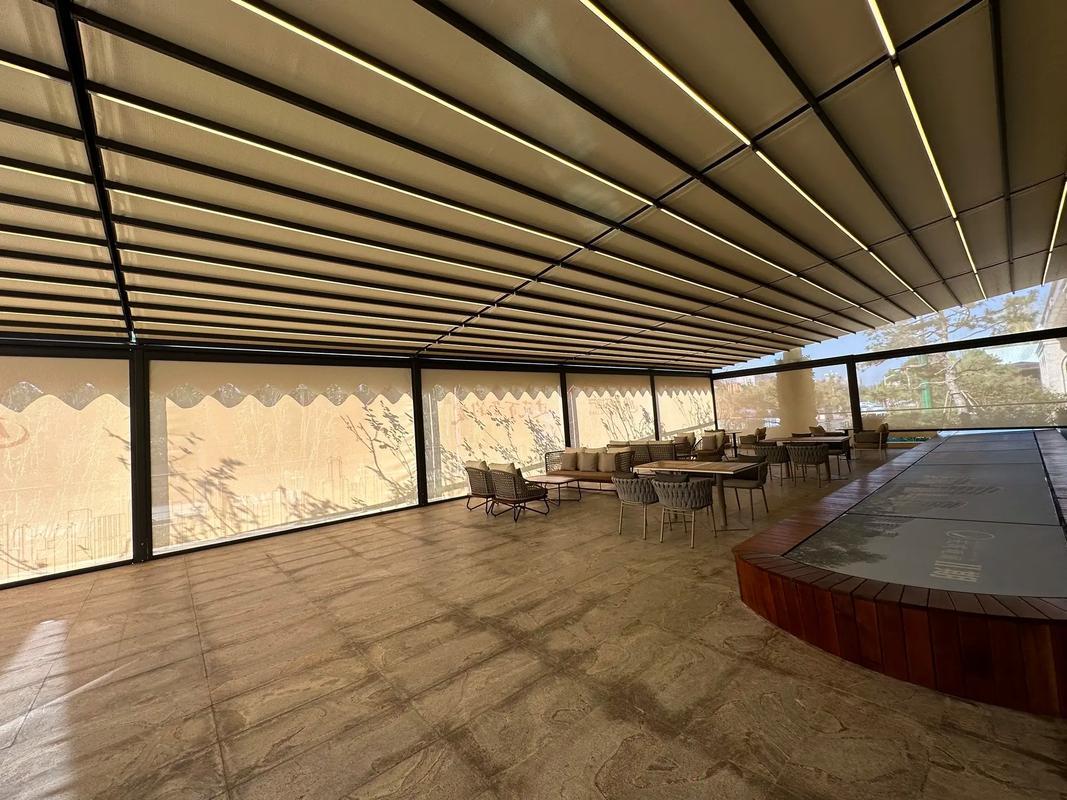 电动折叠天幕同样具有显著的优势。它的折叠设计使得收纳方便,不占用过多空间。在不需要使用时,可以将其折叠起来,保持环境的整洁。同时,电动折叠天幕的外观美观大方,能够与各种建筑风格相融合,提升整体的美观度。
