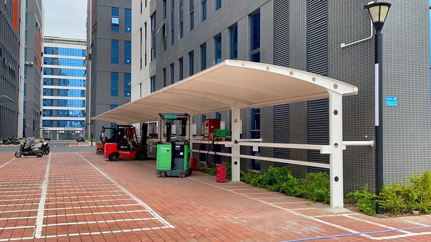电动车棚:作为电动车棚源头厂家,义乌市恒伟膜结构工程有限公司生产的电动车棚具有占地面积小、安装方便等优点。对于小区、商场等场所来说,电动车的停放是一个常见的问题,该公司的电动车棚能够很好地解决这一问题。它可以为电动车提供一个安全、干燥的停放环境,避免电动车因日晒雨淋而损坏。