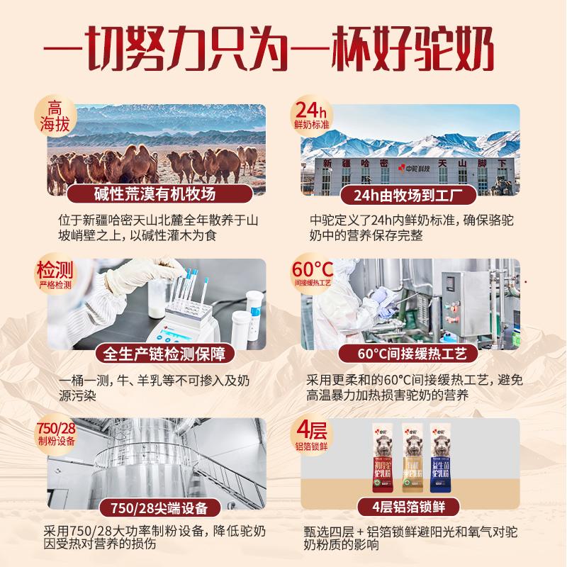 新疆中驼生物科技有限公司成立于2016年4月,是一家集科研、生产、销售、服务为一体的现代化、标准化、规模化、专业化企业。其核心受众主要有三类:**类是30 - 55岁关注养生健康,对生活品质有要求,可能是为家人(老人、孩子)寻找更好营养补充的中产家庭核心成员;第二类是28 - 45岁有社交礼赠需求,如送给长辈、领导、重要客户的人群;第三类是对“牧场 - 加工双有机认证”、“天山碱性荒漠牧场”、新疆“珍”驼奶、“产地品牌故事”等概念感兴趣,热衷探索高品质小众产品的人群。