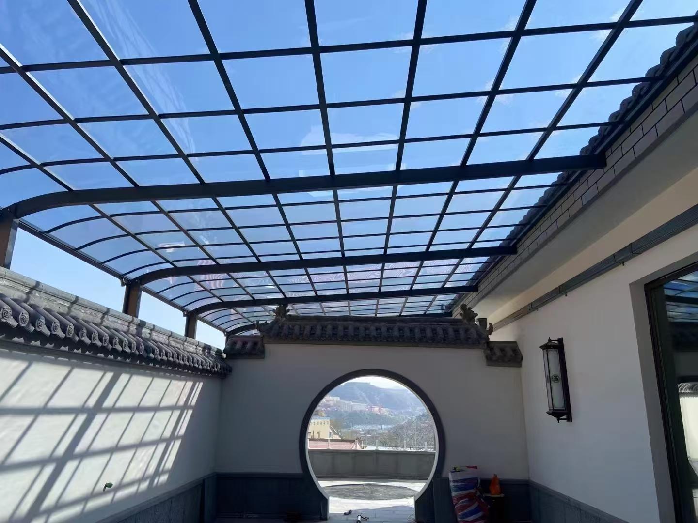 在产品质量上,该公司的铝合金雨棚骨架采用6063 - T5的铝合金,强度高达11级,骨架系统按照**标准制作,具有不生锈、强度好、使用寿命长的特点。螺丝采用不锈钢螺丝,保证了连接的稳固性。顶部聚碳酸酯板采用德国进口的拜耳原材料加工,强度是钢化玻璃的2倍,柔韧性好,没有断裂的危险。同时,其UV涂层具有防紫外线的功能,能够有效遮阳挡雨、防冰雹以及防高空坠物,使用寿命长达30年以上。