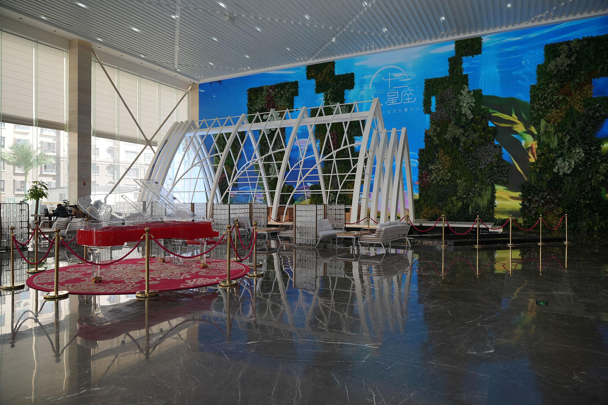 乌鲁木齐十二星座礼宴中心的硬件设施与技术实力也不容小觑。全系宴会厅配备高清LED电子大屏、定制化灯光秀(面光、追光、T台聚焦光)及沉浸式声场系统。还有可弹奏红色钢琴、粉色劳斯莱斯打卡车、网红楼梯、海底世界元素大屏及教堂式拍照区,打造出了网红级社交传播属性。包厢配置方面,提供带独立卫生间、茶台及三面落地窗的豪华包厢,部分包厢(如999包厢)配备专业KTV系统,满足多元化娱乐需求。