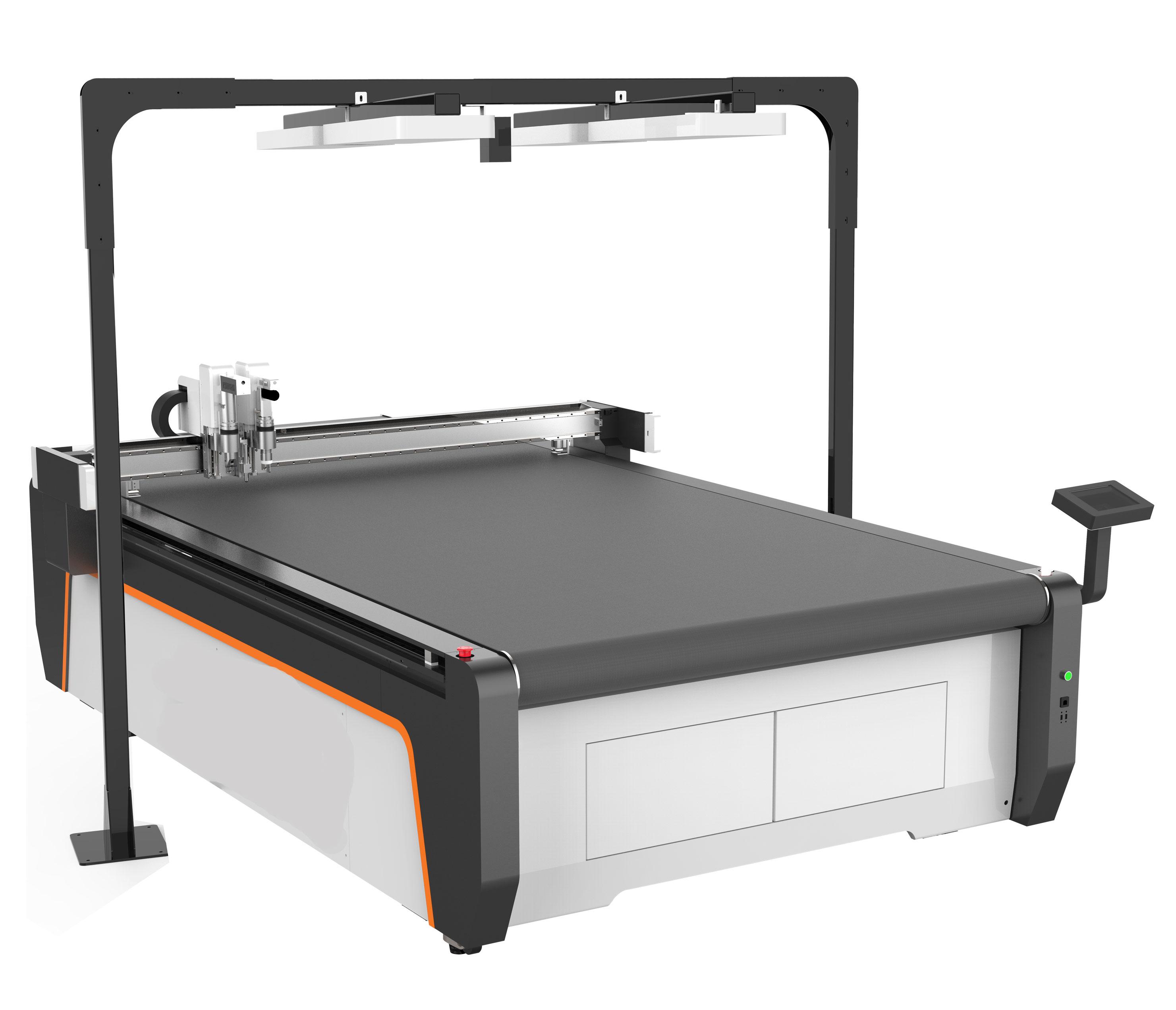 在性能上,具有微米级切割精度。搭载CCD视觉定位系统 + 智能补偿算法,自动识别材料排版与边缘轮廓,切割精度可达±0.1mm;搭配高频振动刀头,裁切边缘光滑无毛刺、无焦边,无需二次修边处理。超高效率裁切,刀头振动频率可达18000次/分钟,配合全自动送料系统,裁切速度较传统设备提升50%以上;支持多层材料同步切割,大幅提升单位时间产能。一机多用全能裁切,集成智能切割、全切、半切、开槽、压痕、打孔四大功能,无需更换刀具即可完成多道工序;兼容碳纤维、PVC篷布、皮革、珍珠棉、碳纤维布、广告KT板等50余种非金属材料行业,覆盖广告、包装、汽车内饰、新材料、新能源等全行业需求。