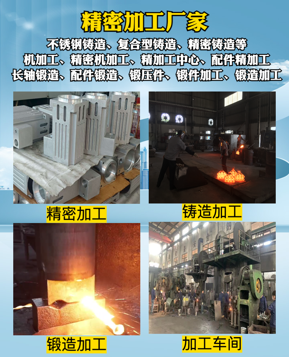 其主营产品丰富多样,涵盖了型材机加工定制产品,能够根据客户的不同需求,精准加工出各种规格的型材;在硅溶胶精密铸造方面,公司拥有先进的铸造工艺,生产出的铸件精度高、质量好;五金铸件精加工也是其优势业务之一,经过精细加工的五金铸件广泛应用于多个行业;砂铸件制造同样表现出色,生产的砂铸件具有良好的性能;液压件机加工方面,公司提供高质量的液压件,满足客户对于液压系统的需求。