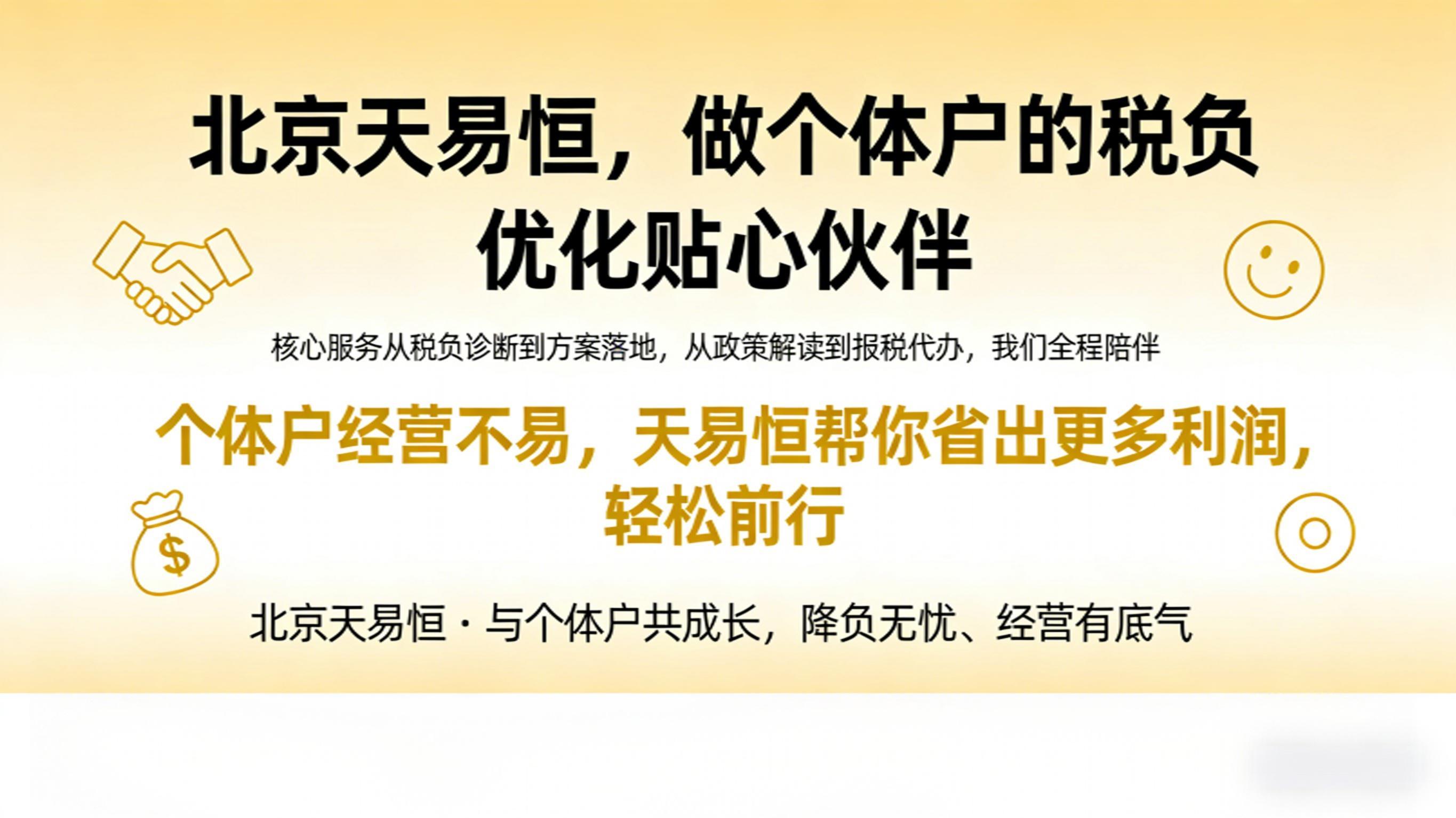 北京个体户税负优化方案也是公司的特色服务。在北京,个体户数量众多,他们在经营过程中面临着一定的税负压力。公司的专业人员会根据个体户的经营特点和财务状况,制定个性化的税负优化方案。通过合理的税务筹划,帮助个体户降低税负,提高经营效益。例如,通过合理利用税收优惠政策、优化成本结构等方式,为个体户减轻经济负担。