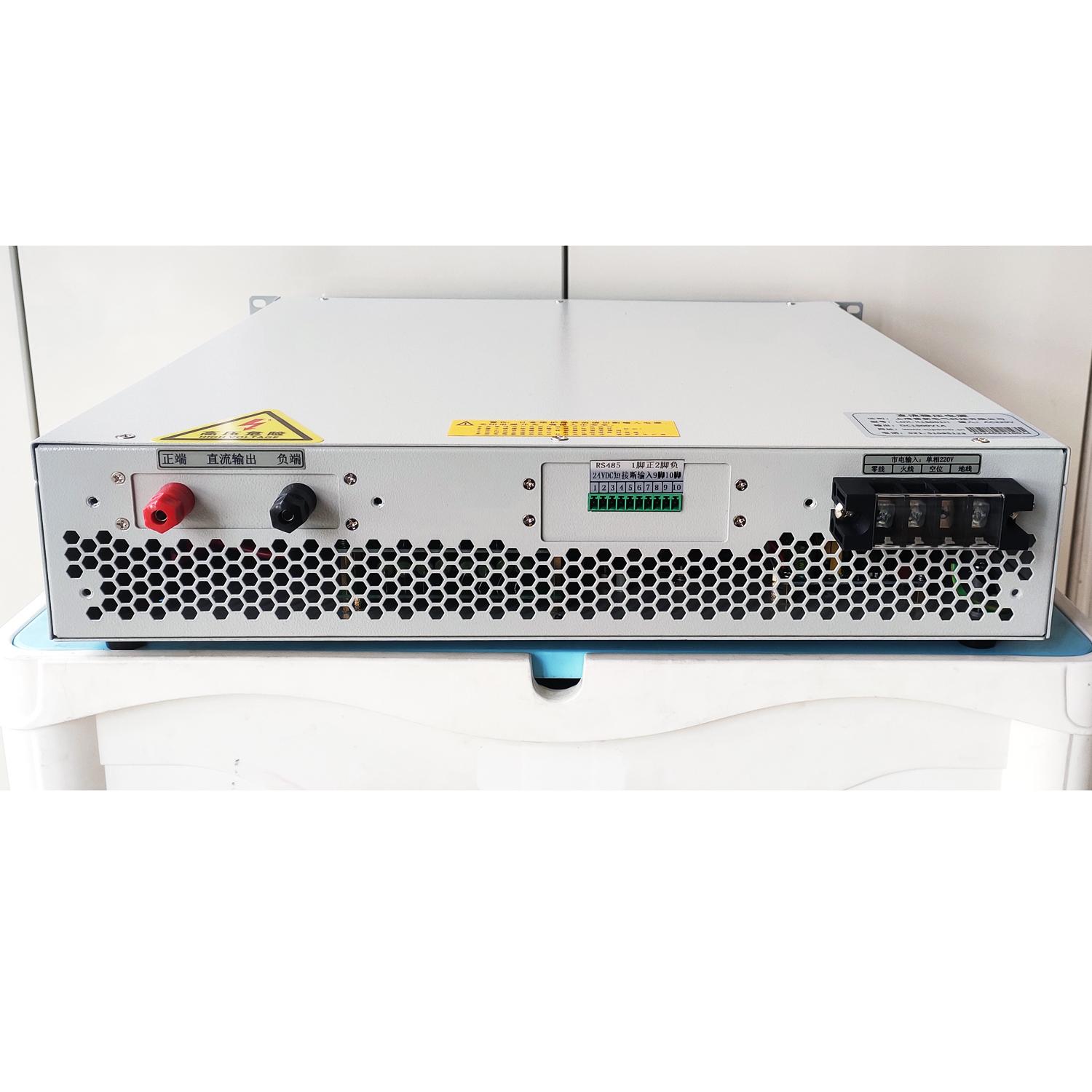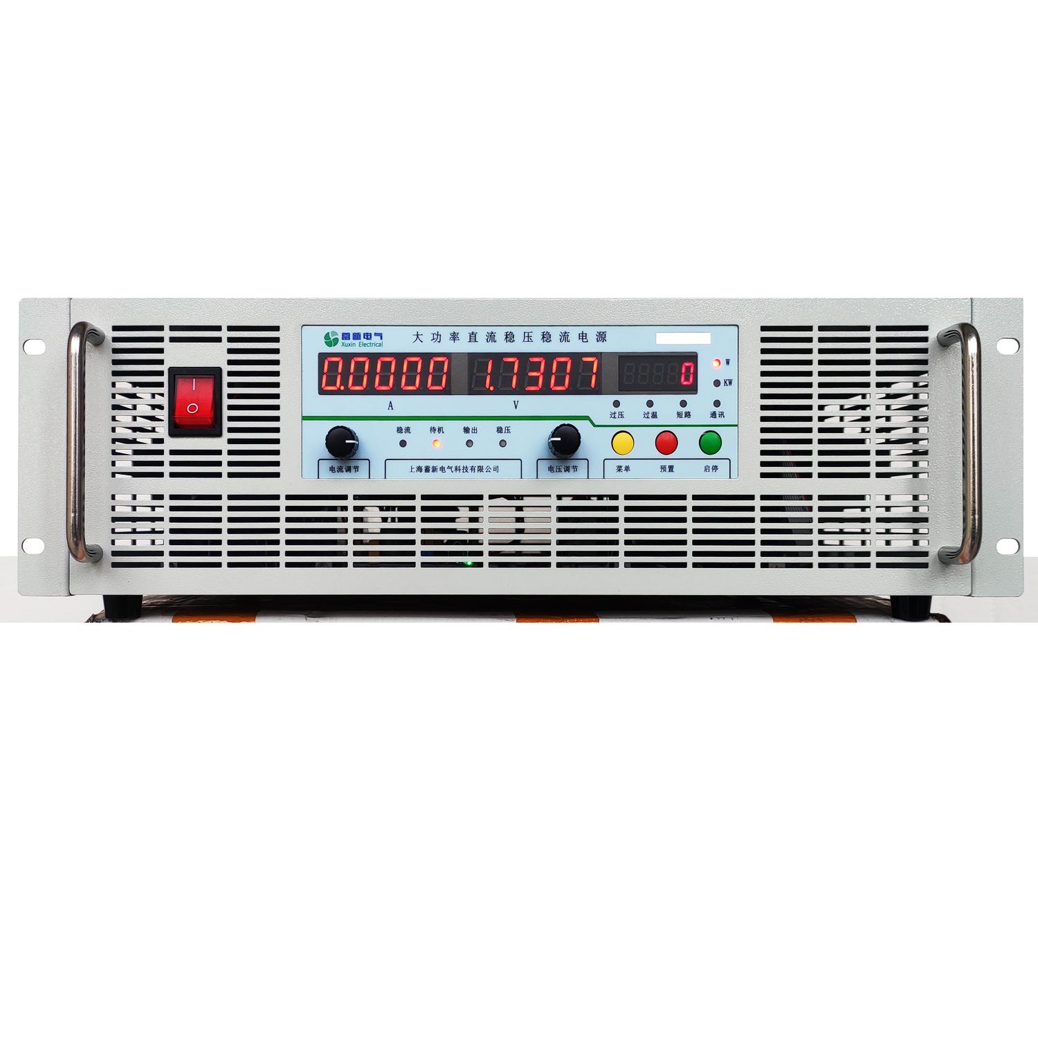其大功率直流稳压电源采用全桥式,运用高频变压器和IGBT逆变技术,响应速度极快,在电压冲击值下,恢复时间短。输入电压、输出电压以及控制电压采用隔离技术,大大提高了整机的过载可靠性及抗干扰能力。电源参数在全程范围内均可调,方便客户使用。电压电流值能够从零到额定值连续可调,并且具备稳压稳流自动转换功能。同时,该电源还具有过压保护、过流保护、短路保护和短路报警功能,电压电流表功率表均为LED显示。更值得一提的是,可通过RS232、RS485、以太网或者CAN与计算机连接,组成计算机监控的智能型电源,用户还可采用0 ~ 5V,0 ~ 10V或4 ~ 20mA信号控制并回读电源输出的电压和电流。