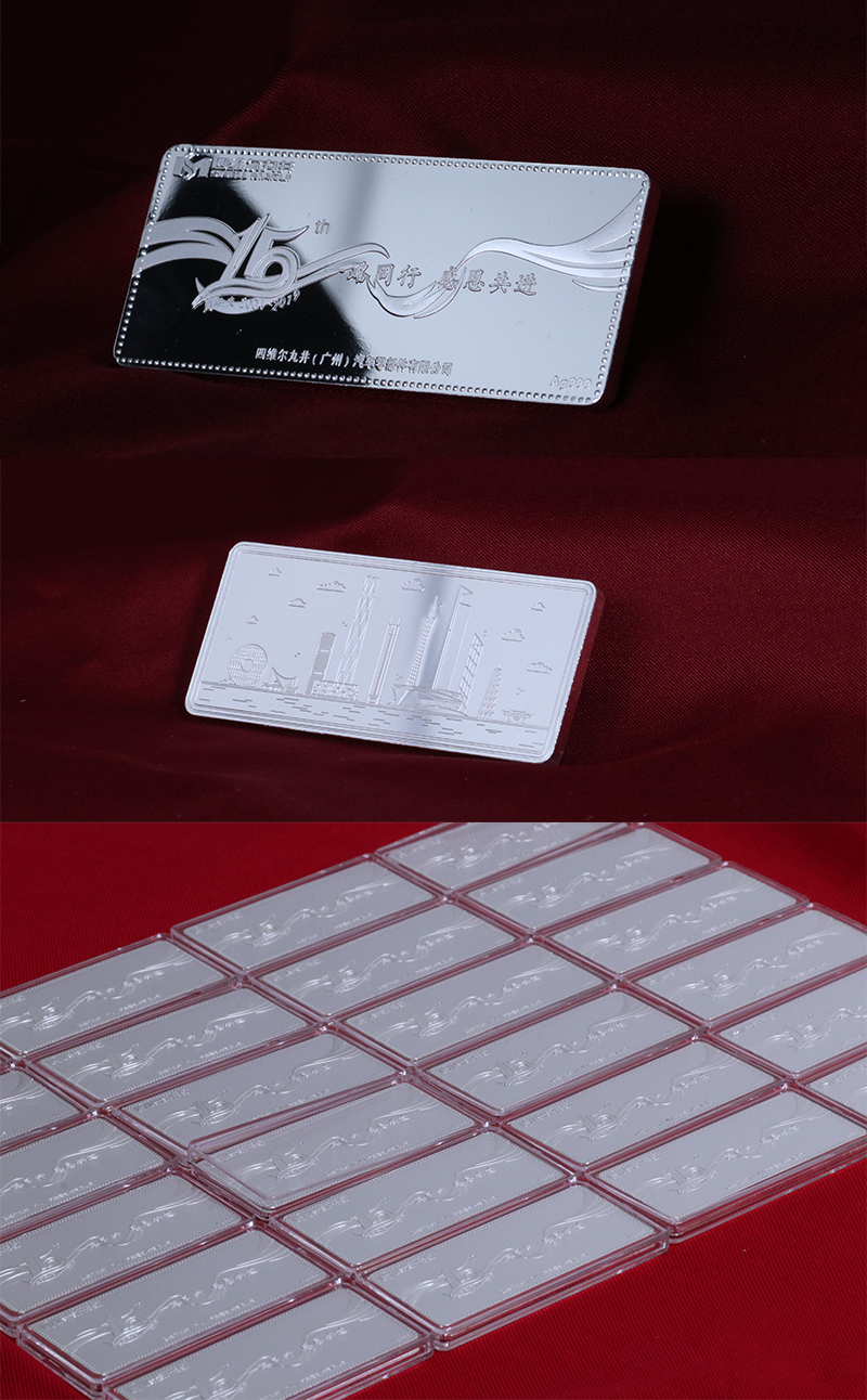 它是具备各种工艺加工的综合型金银制品企业,相对于部分只能从事某一两种工艺的厂家,广东金和金川定制科技有限公司能从事液压、冲压、电铸、浇铸、手工加工等各类工艺。其产品业务线涵盖丰富,有金银纪念章、金银条、金银纪念钞、金银徽章、金银奖章等金银全系列产品。产品线用料也十分多样,涵盖万足金、万足银、18K金、9K金、925银、纯铜、纯锡、合金、翡翠、玉石、宝石、钻石等。