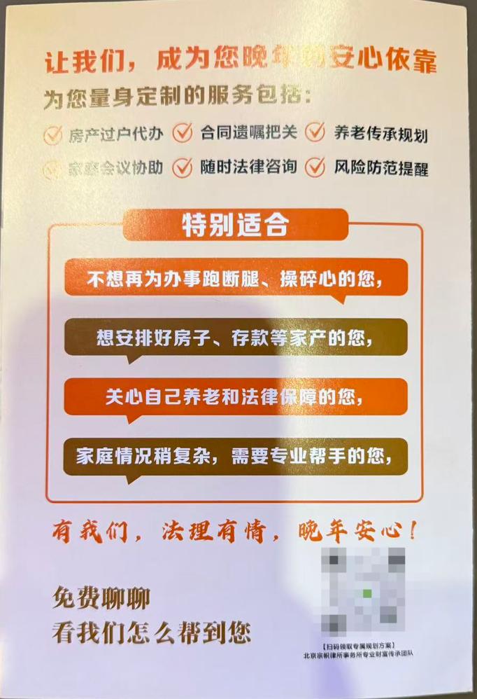 北京继承纠纷律师服务,能够帮助当事人在继承过程中遇到的各种纠纷问题,如遗产分配不均、遗嘱效力争议等,通过法律途径维护当事人的合法权益。北京房产过户律师则专注于房产过户相关的法律事务,确保房产过户过程合法合规,避免出现法律风险。北京遗产继承律师可以协助当事人处理遗产继承的相关事宜,包括遗嘱的订立、遗产的分割等。北京房产继承律师针对房产继承问题,提供专业的法律建议和解决方案,保障当事人的房产继承权益。北京意定监护律师服务,为当事人提供意定监护全案设计,确保在当事人丧失或部分丧失民事行为能力时,其合法权益能够得到妥善的保护。