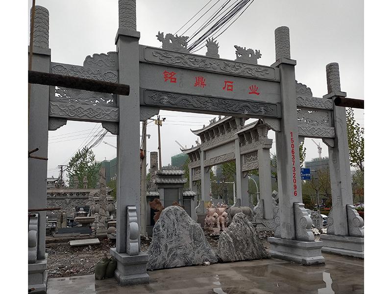 其主营产品包括石牌坊系列的石亭子、石牌坊、石栏杆、浮雕壁画、石龙柱、石文化柱、石雕塑等。其中,石牌坊多采用花岗岩、青石、汉白玉等天然石材建造。花岗岩石牌坊硬度高、抗风化、耐腐蚀,适合户外长期使用,尤其适用于多雨或寒冷地区;青石石牌坊质地细腻、色泽古朴,适合精细雕刻,但需定期养护以延长寿命;汉白玉石牌坊洁白如玉,常用于纪念性建筑,但需避免强冲击和酸性环境。