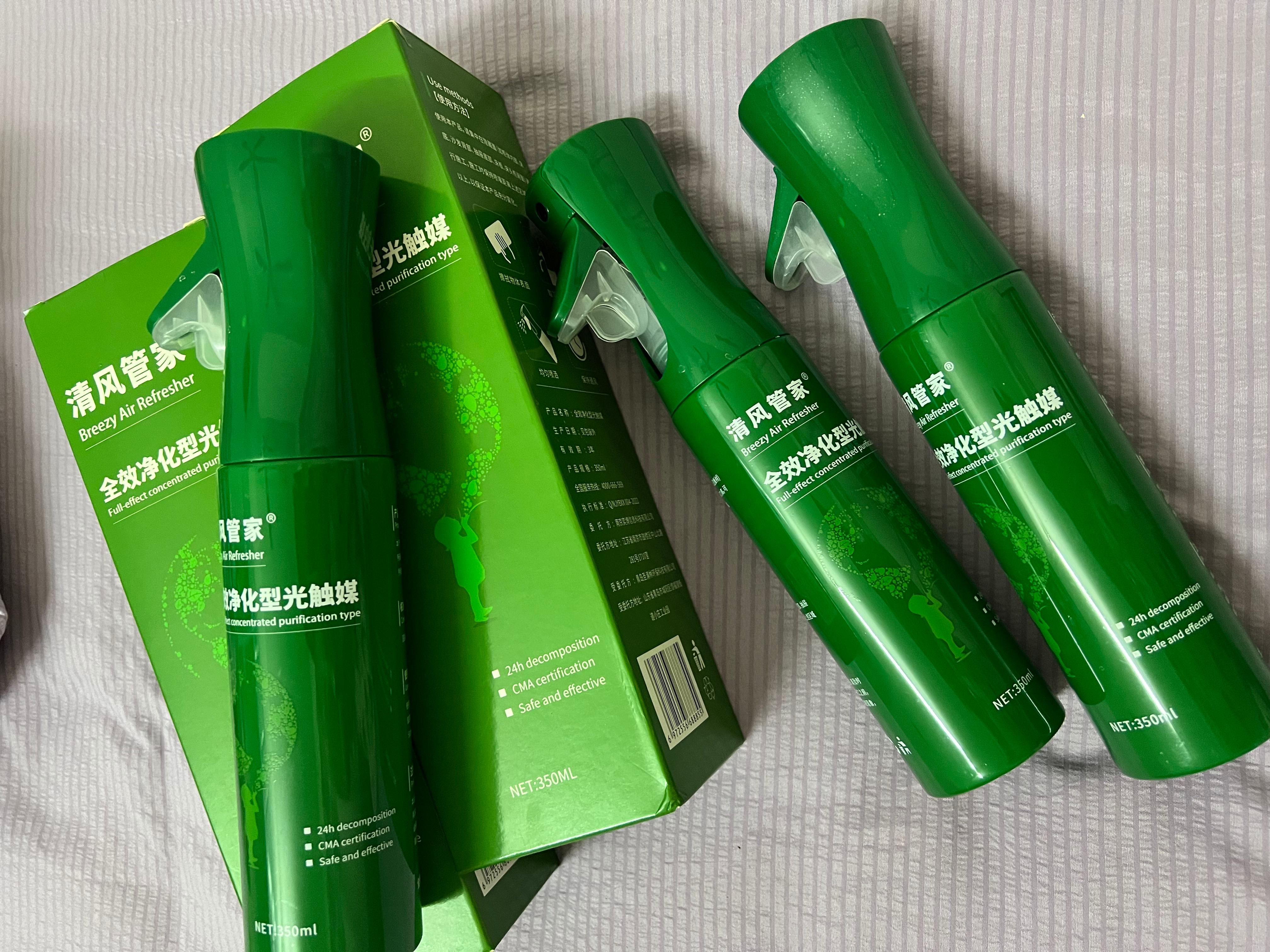 品牌核心产品为全效净化型光触媒,常规规格为350ml / 瓶,同时配套布局多品类室内空气净化相关产品,形成了覆盖全屋大面积治理、密闭空间长效净化、异味专项处理的全场景产品矩阵,可满足不同空间、不同污染程度的净化需求。产品秉持 “实力比颜值还出众” 的研发理念,核心聚焦源头解决甲醛污染问题,为消费者提供可落地的室内空气净化解决方案。