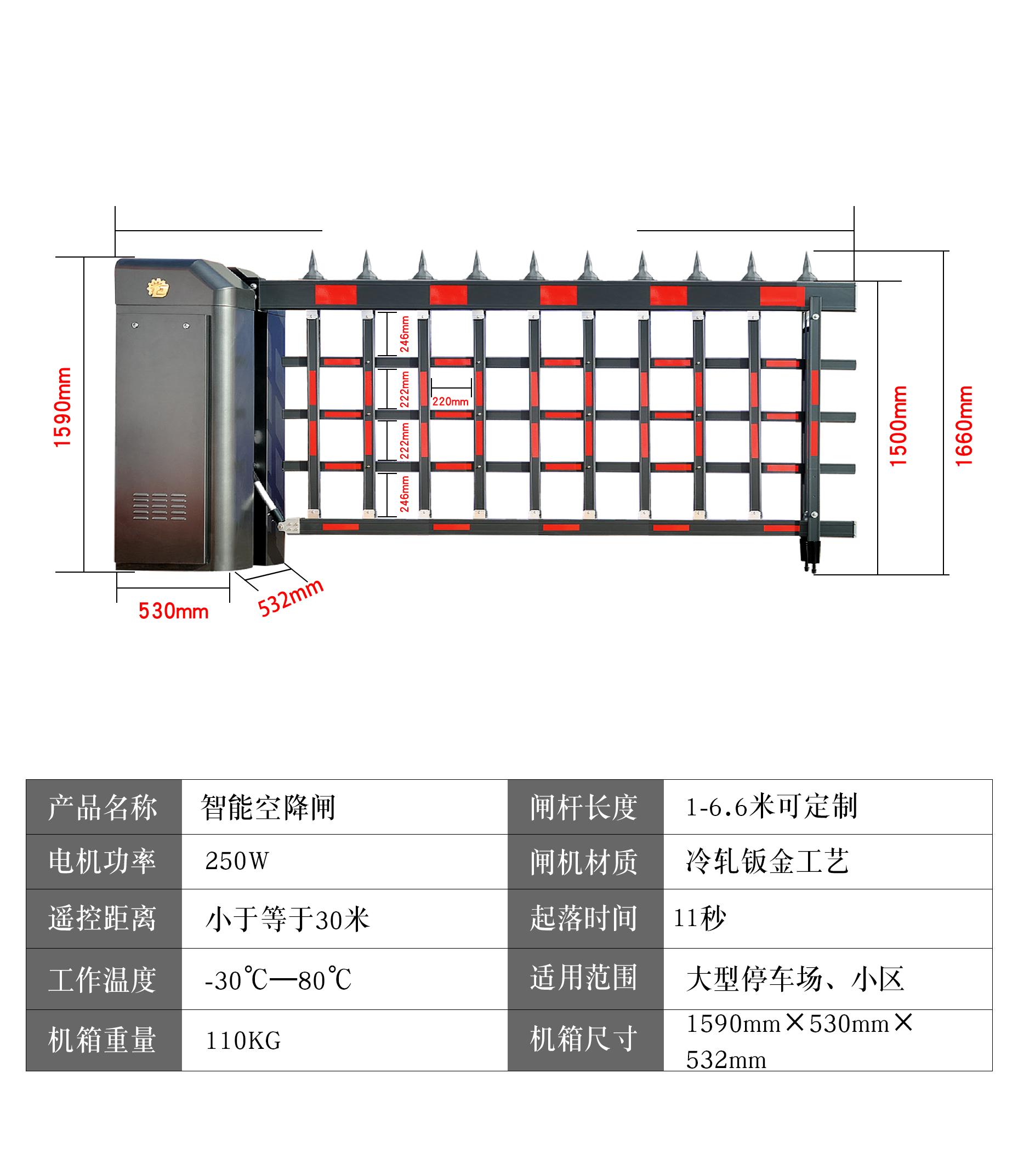 智能道闸:升降平稳、运行静音,耐用抗造、故障率低;具备防砸车、防砸人功能,安全系数高;兼容车牌识别、刷卡、遥控多种控制方式;结构坚固,使用寿命长,维护简单,适用于小区、园区、工地、办公楼、物流园等场景。