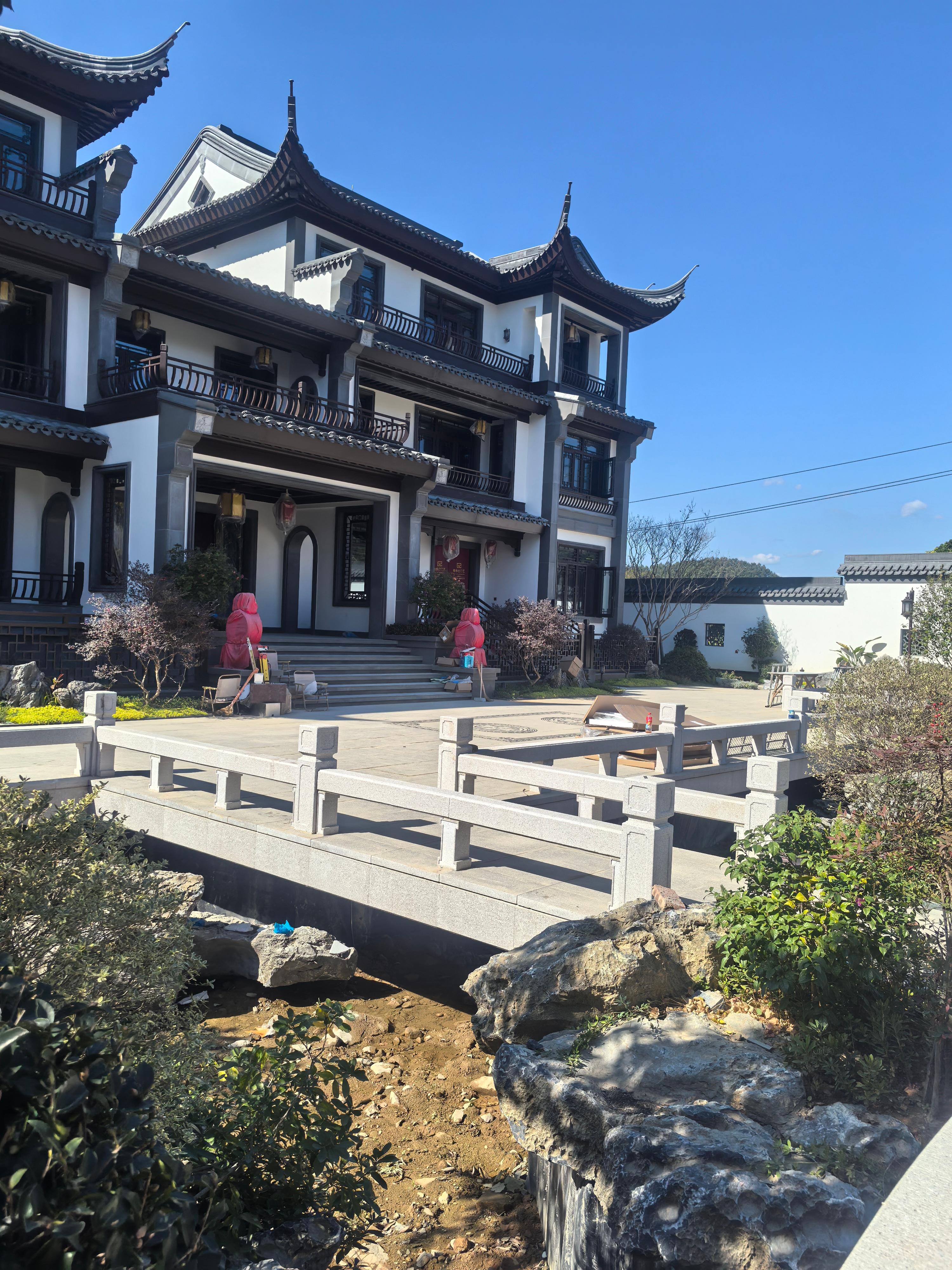 3. **中式古建铝艺全套构件**:古建将军门、长廊连廊、仿古凉亭、飞檐翘角、挂落、美人靠、庭院护栏、仿古隔断、中式屏风、古建阳光房系统等,可一站式配齐古建庭院整体外立面,风格统一、质感高级、经久耐用。